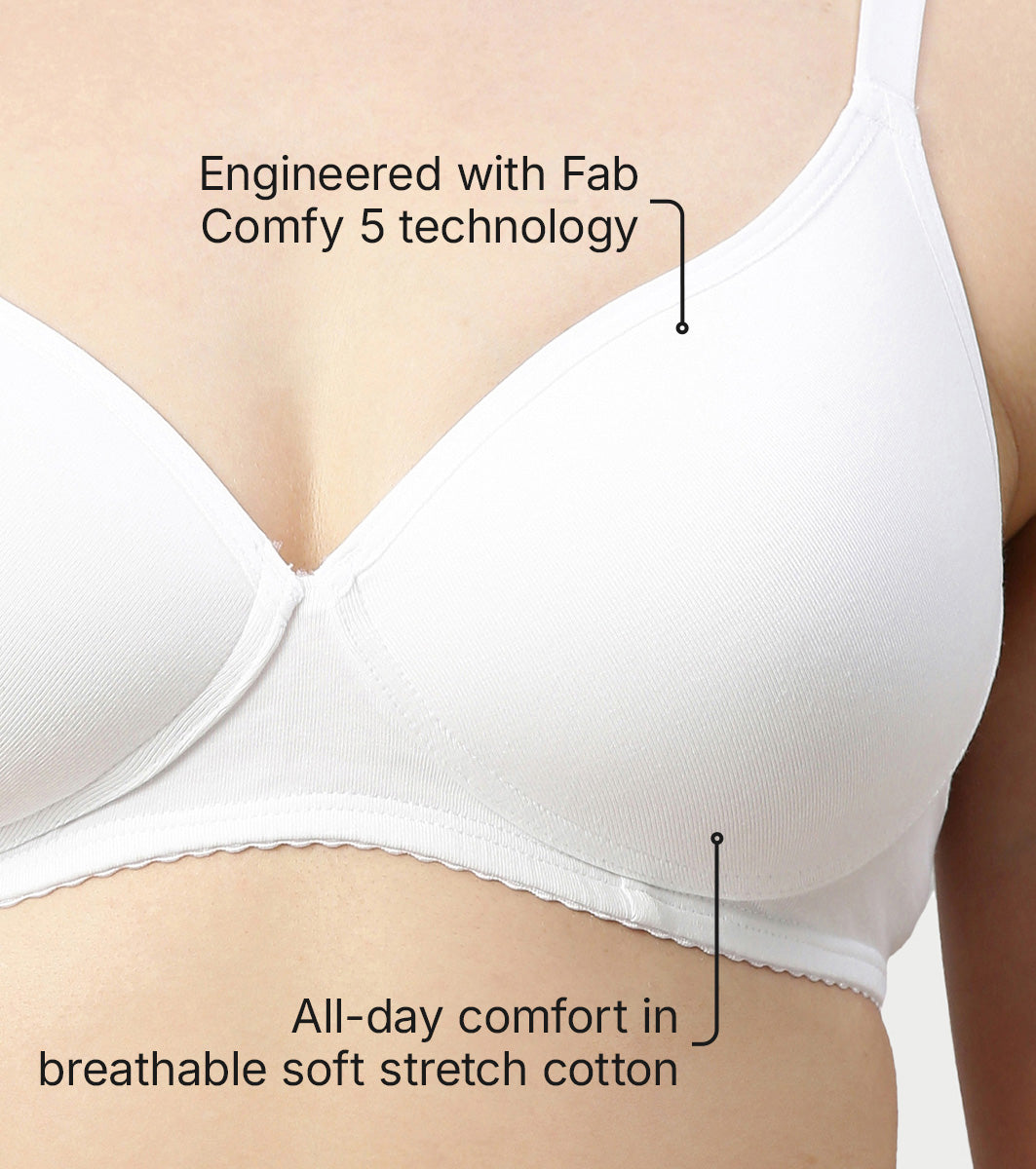 - Engineered with Fab Comfy 5 technology, this bra supports you with gentle support, soft hold straps, flexi-grip elastic and gives you perfect shape and coverage