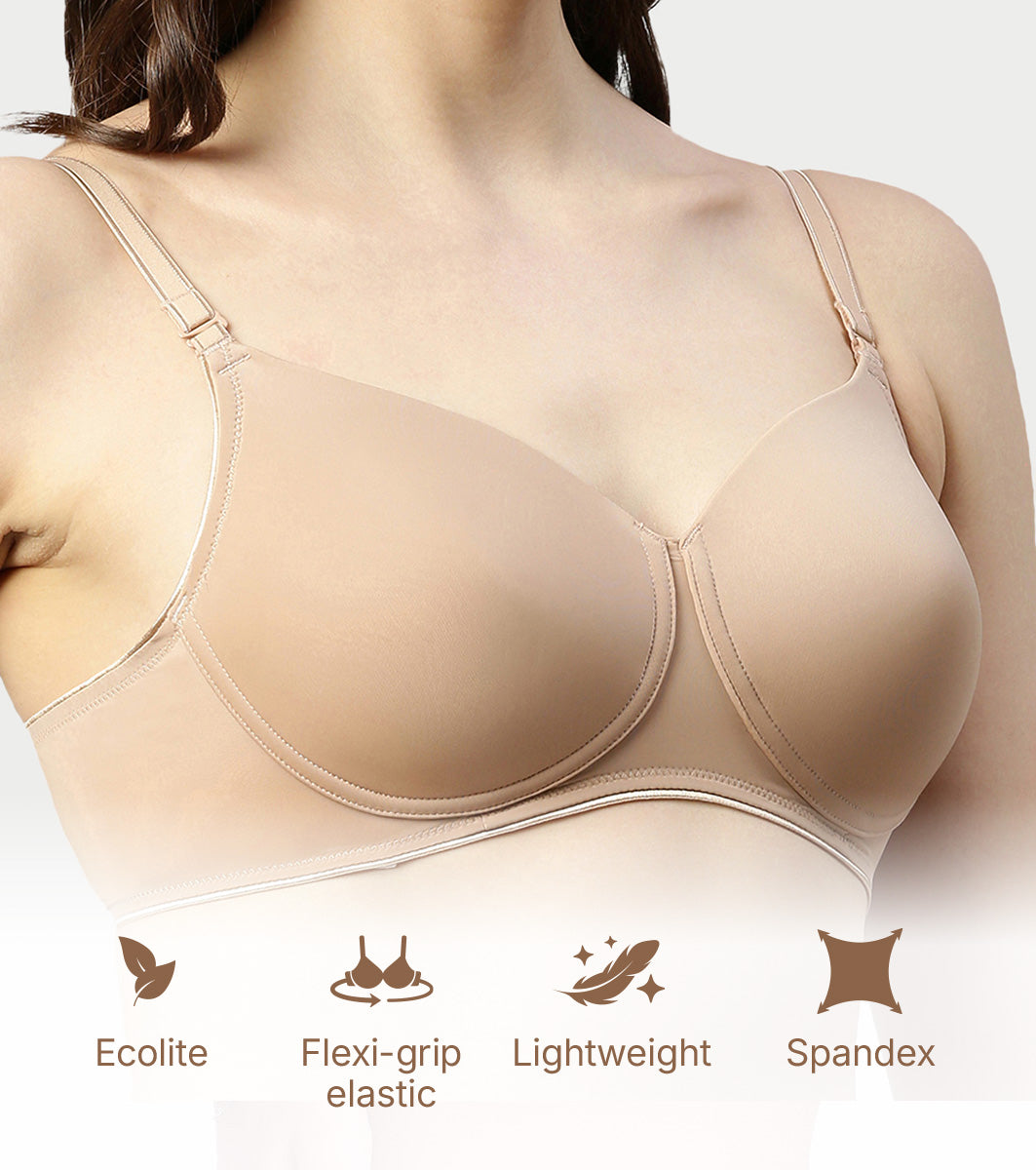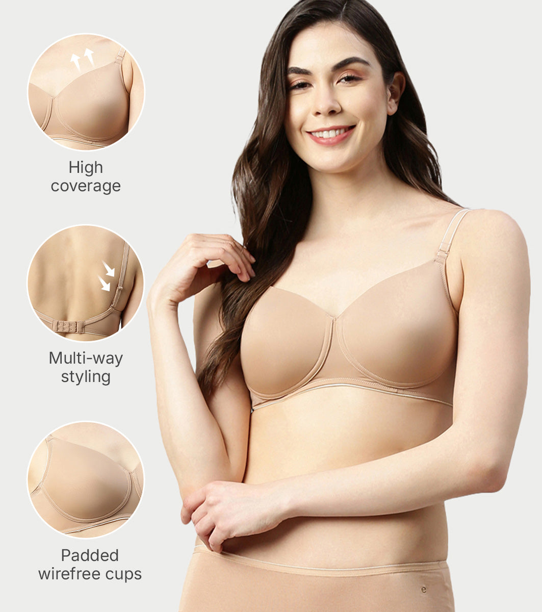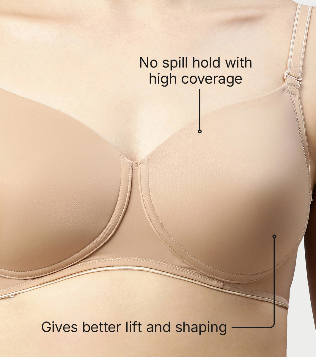 Enamor Innovations Ecolite, Smoother Perfect Lift Women's T-Shirt Bra - Padded, Wirefree, High Coverage - F165 (Honey Beige)