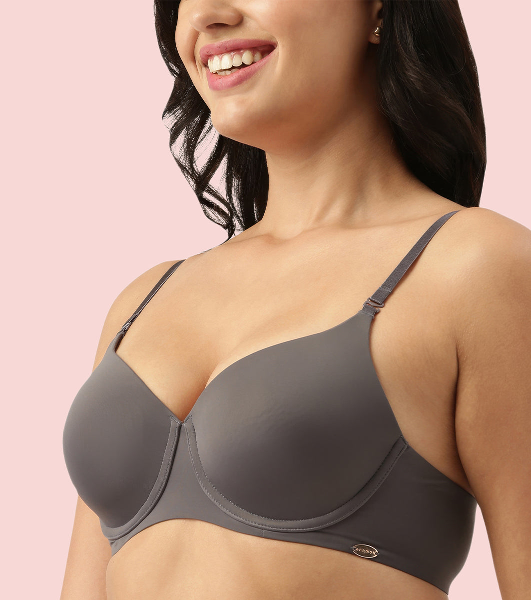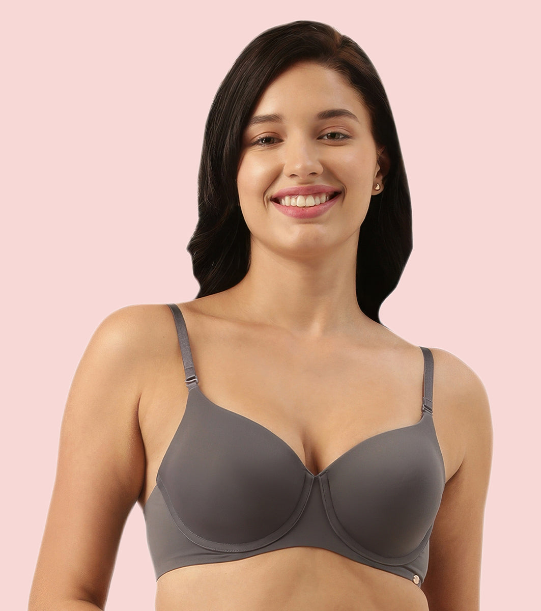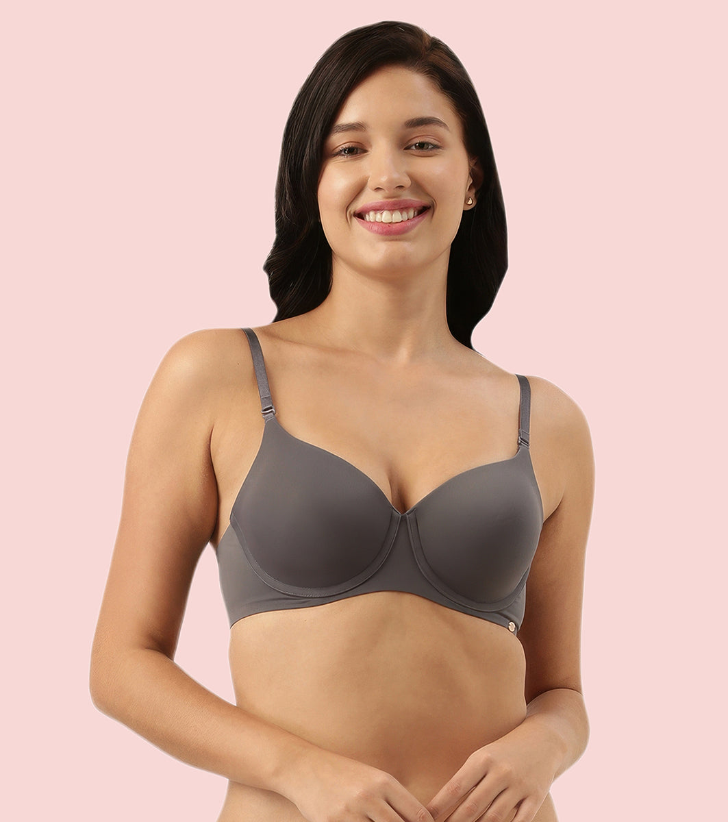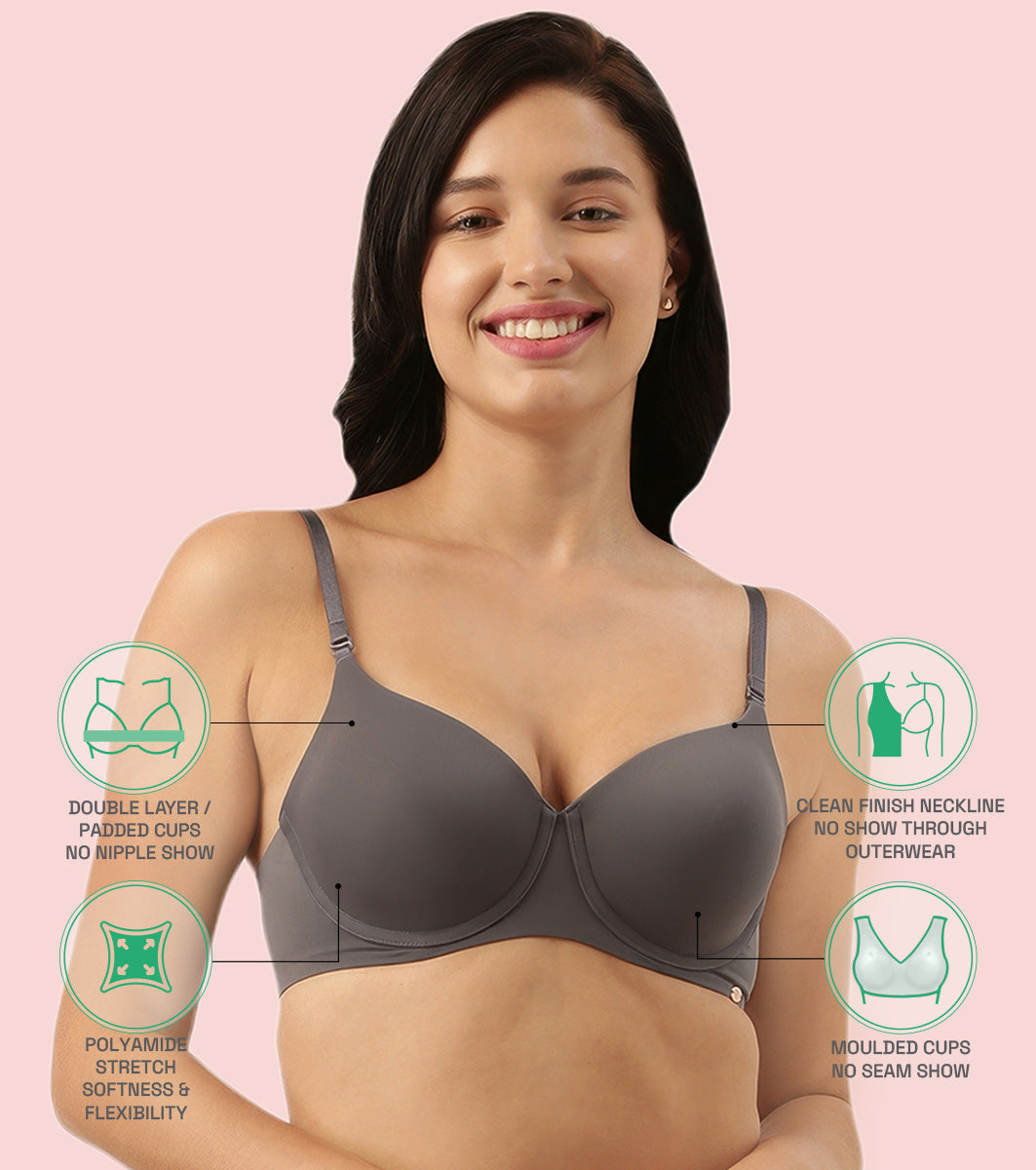 Enamor Innovations Ecolite, Smoother Perfect Lift Women's T-Shirt Bra - Crush Proof Cups, Padded, Wired, High Coverage - F057 (Ink Grey)