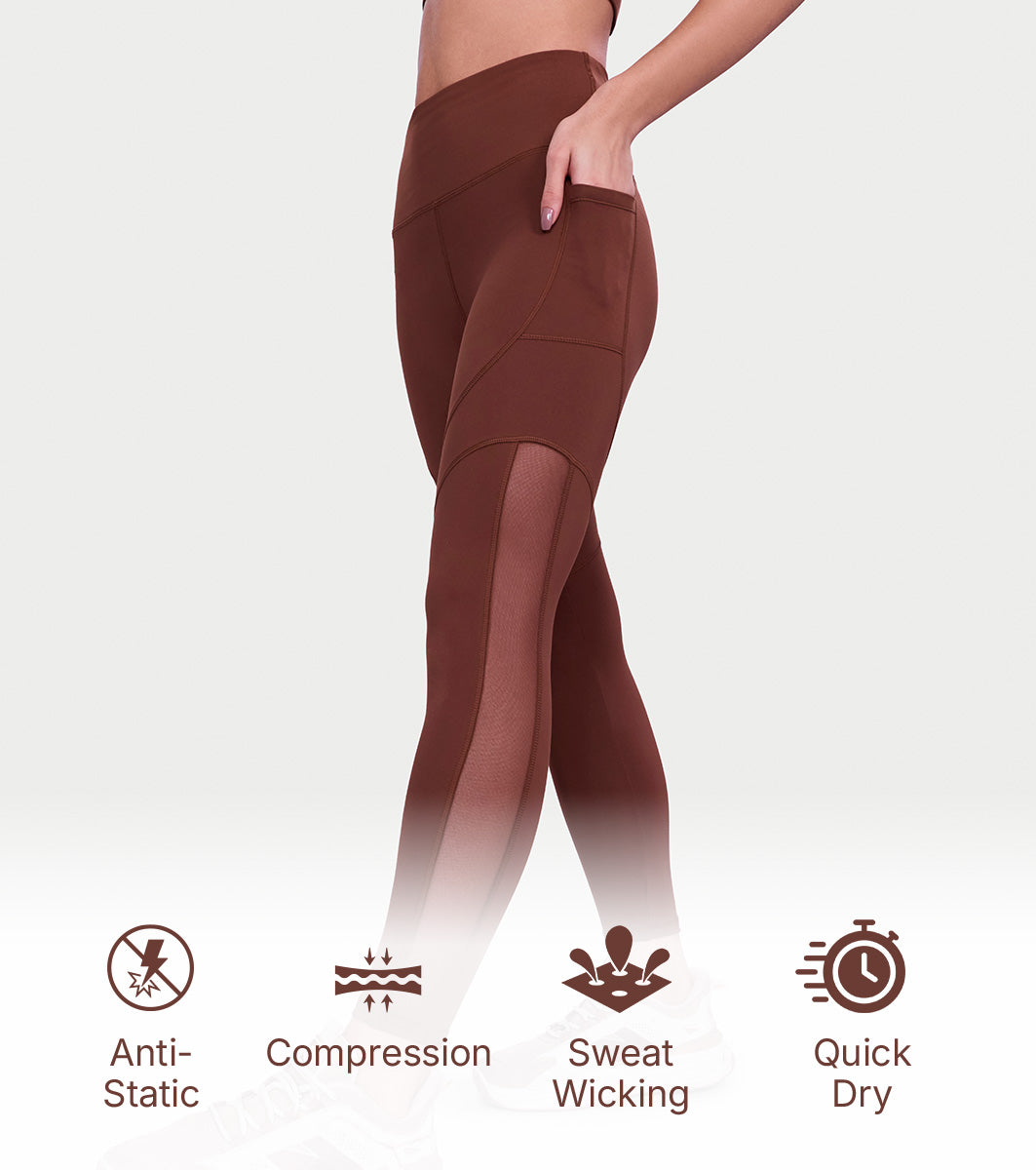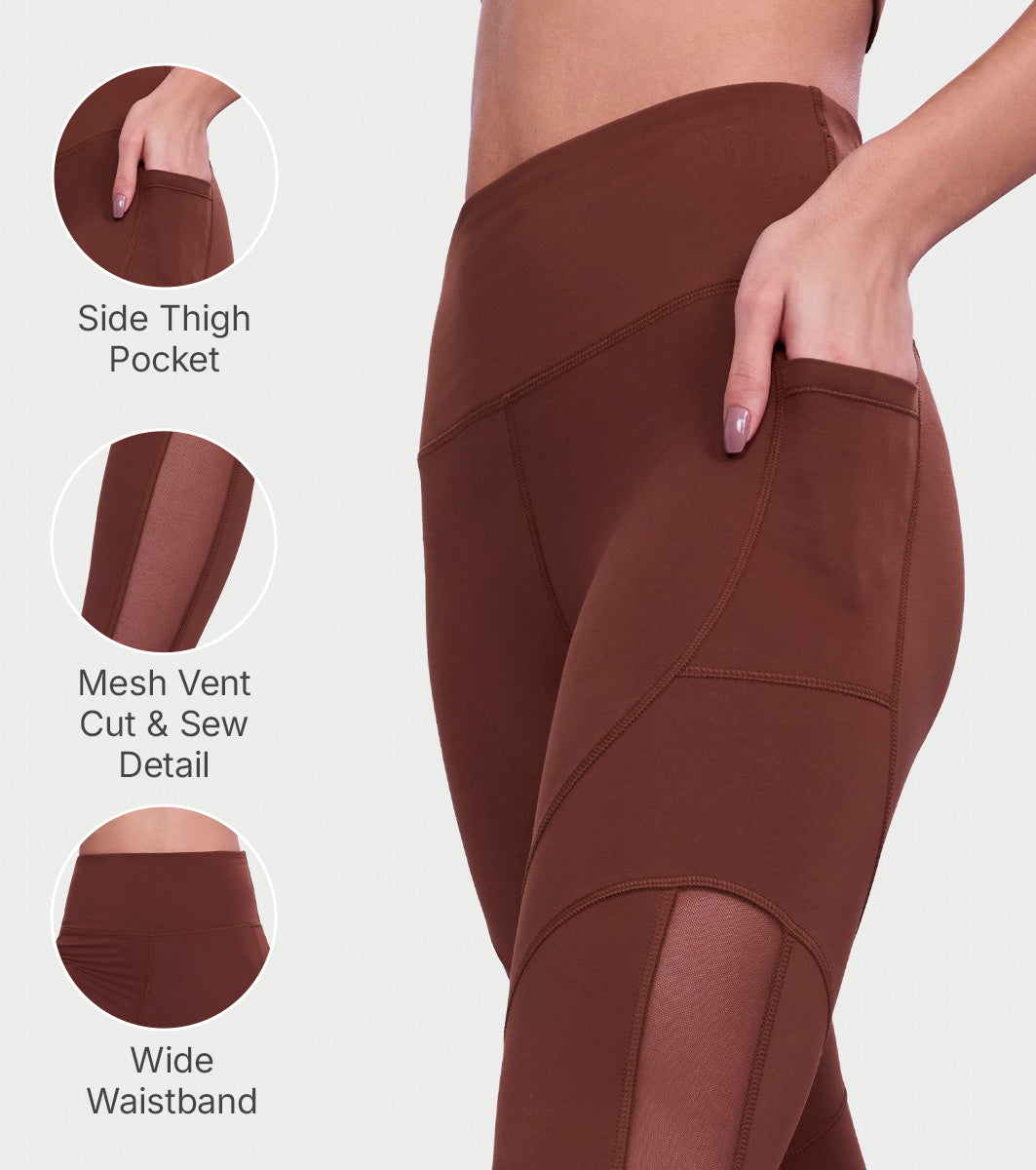 Enamor 7/8th length Dry Fit High Waist Workout Leggings For Women - Held in Fit - A610 (Sepia)