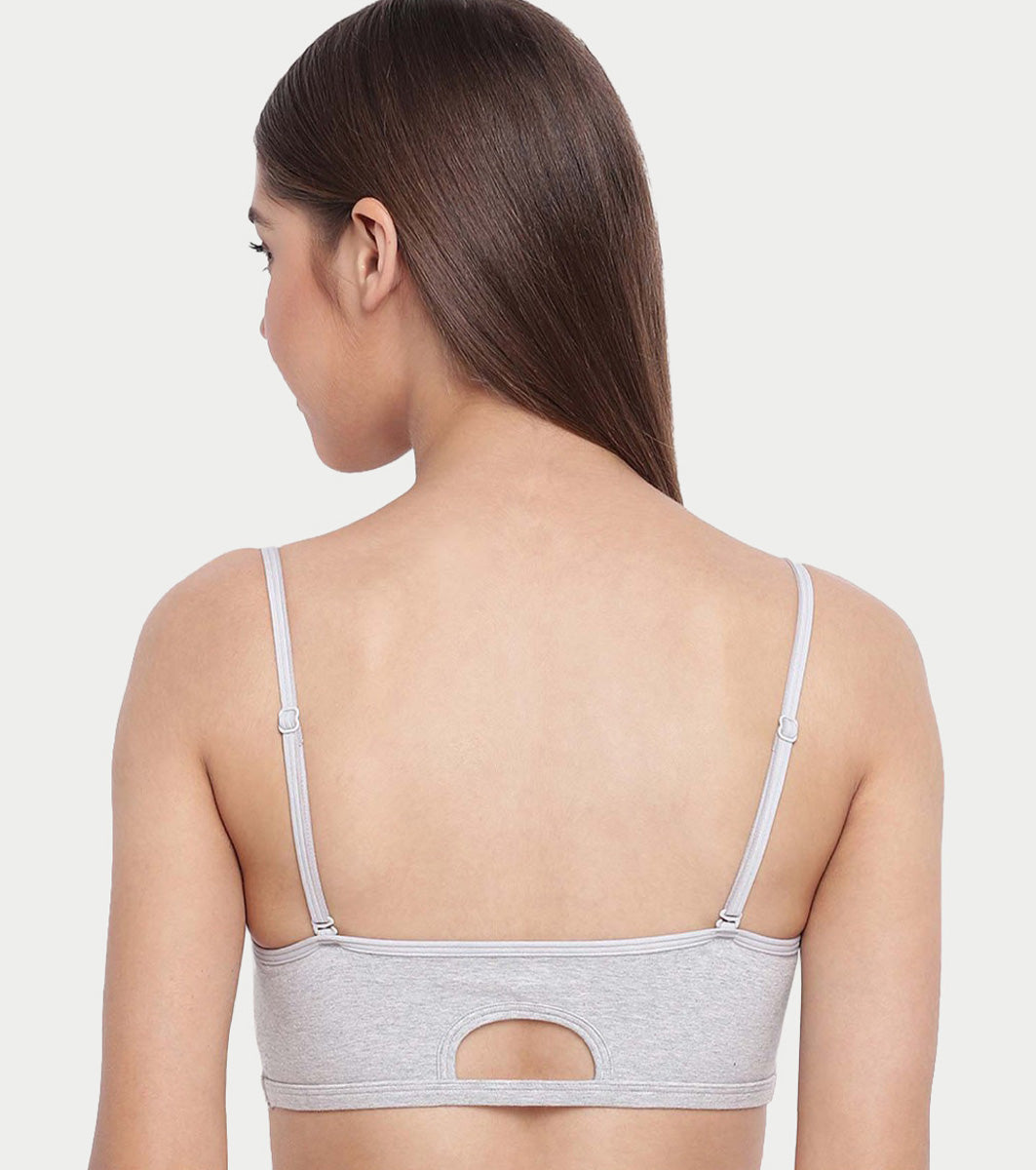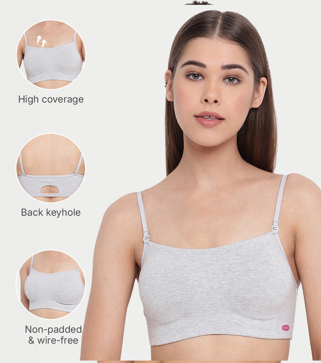 Enamor Moulded Double Layer Front Women's Cotton Cami Bra - Detachable Slim Straps with Back Keyhole, Non Padded, Wirefree, High Coverage - A022 (Greymelange)