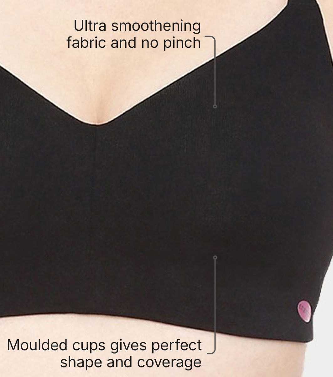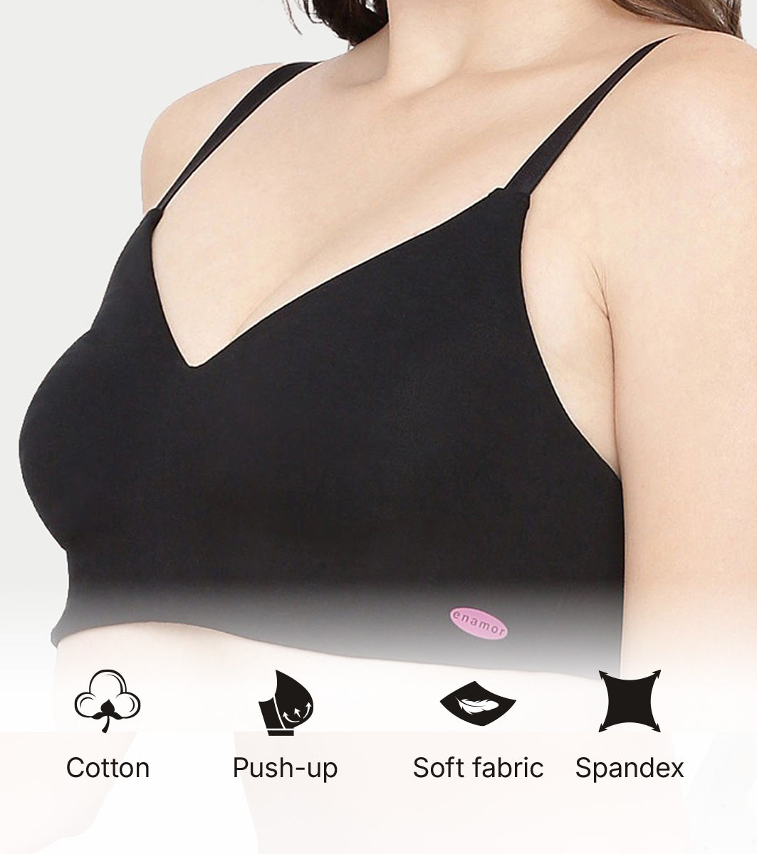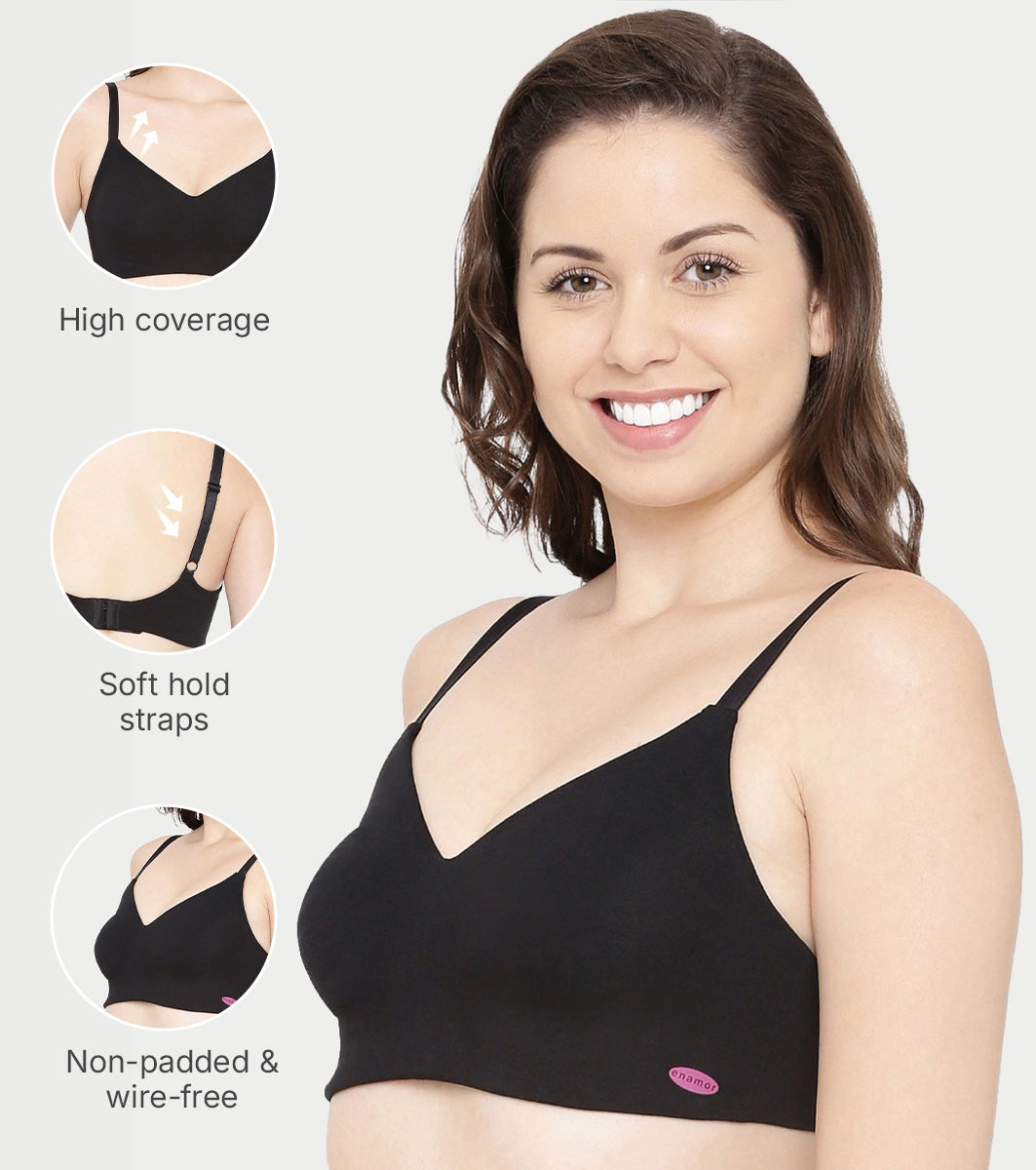 Enamor Ultra-Smoothing Women's Cotton Everyday T-Shirt Bra - No-Pinch, Hidden Lift, Non Padded, Wirefree, High Coverage - A027 (Black)
