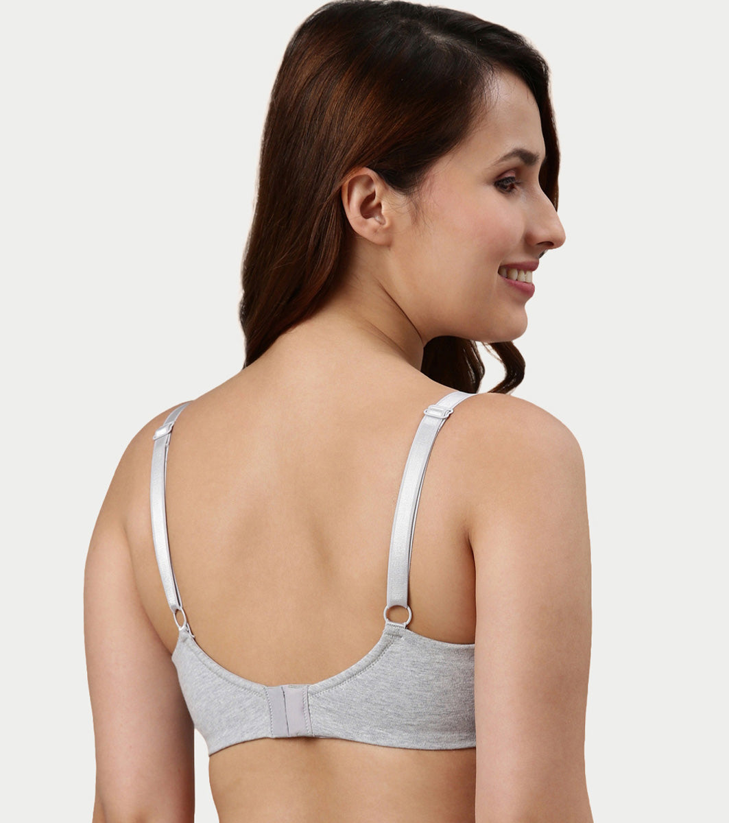 Enamor Ultra-Smoothing Women's Cotton Everyday T-Shirt Bra - No-Pinch, Hidden Lift, Non Padded, Wirefree, High Coverage - A027 (Greymelange)