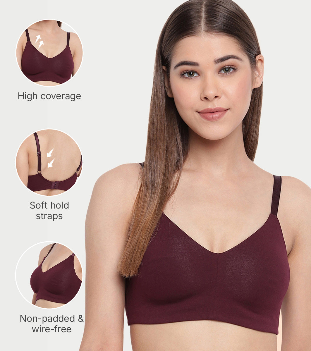 Enamor Ultra-Smoothing Women's Cotton Everyday T-Shirt Bra - No-Pinch, Hidden Lift, Non Padded, Wirefree, High Coverage - A027 (Grapewine)