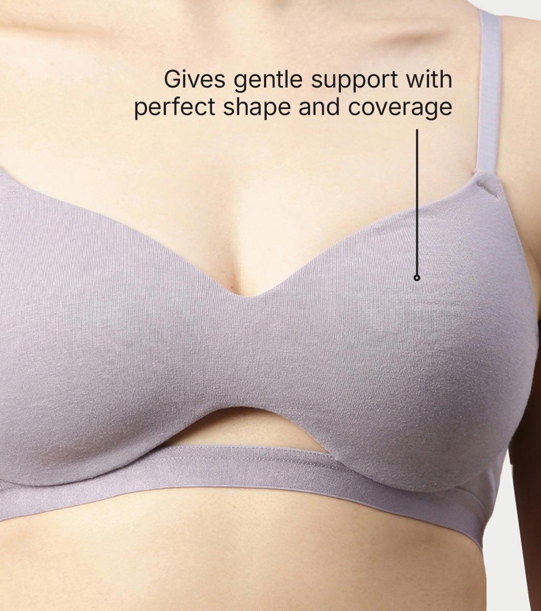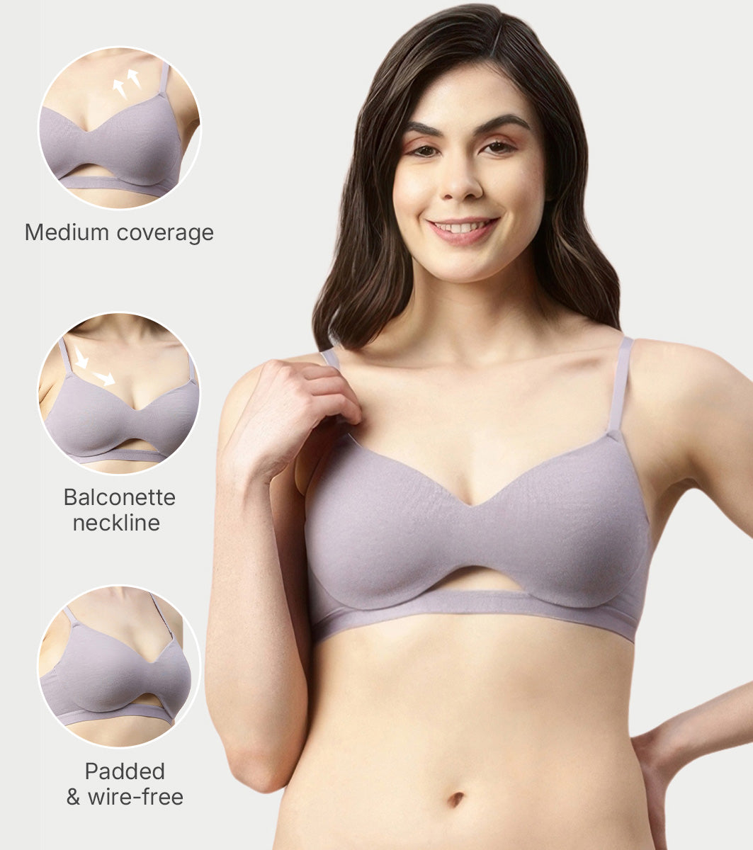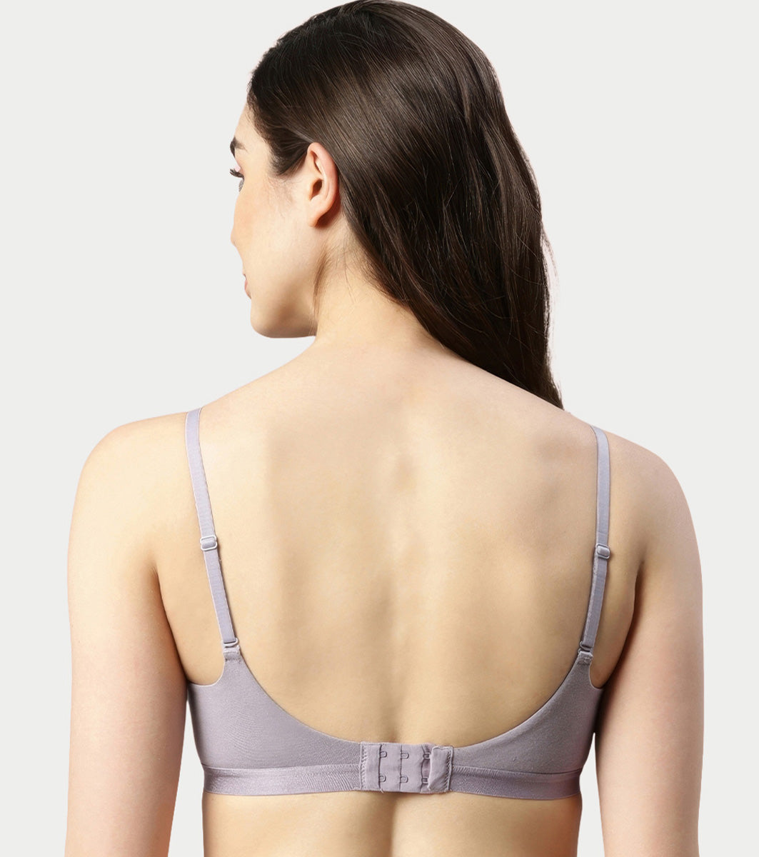 Enamor Innovations CloudSoft, Invisi Neckline Women's Cotton Everyday T-Shirt Bra - Padded, Wirefree, Medium Coverage - A032 (Silver Lilac)