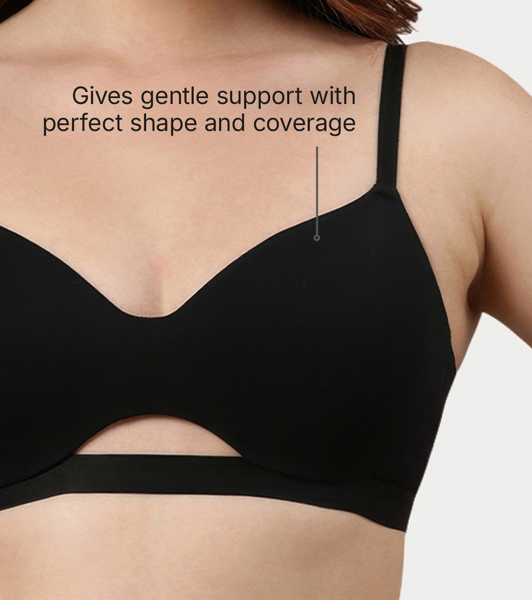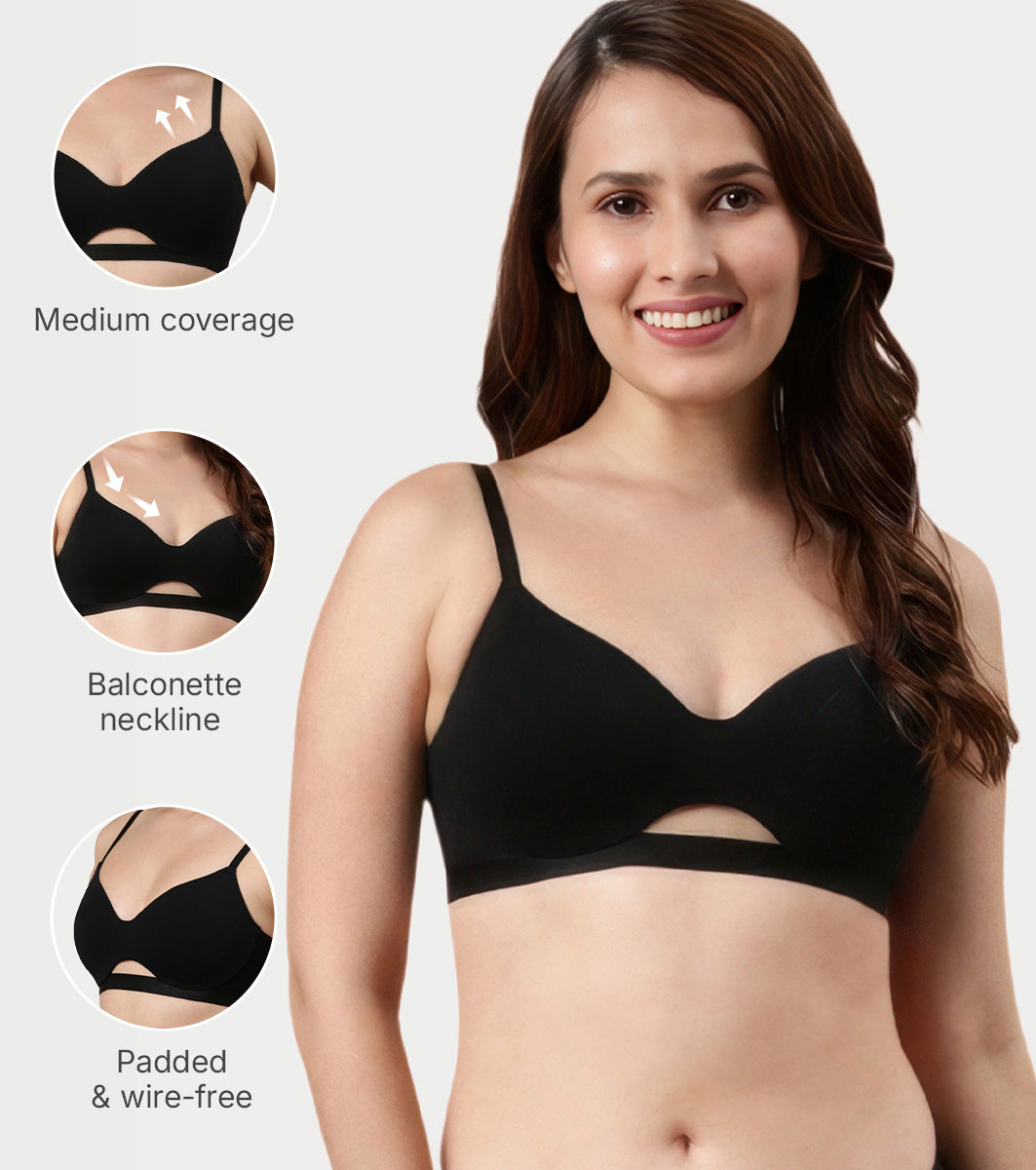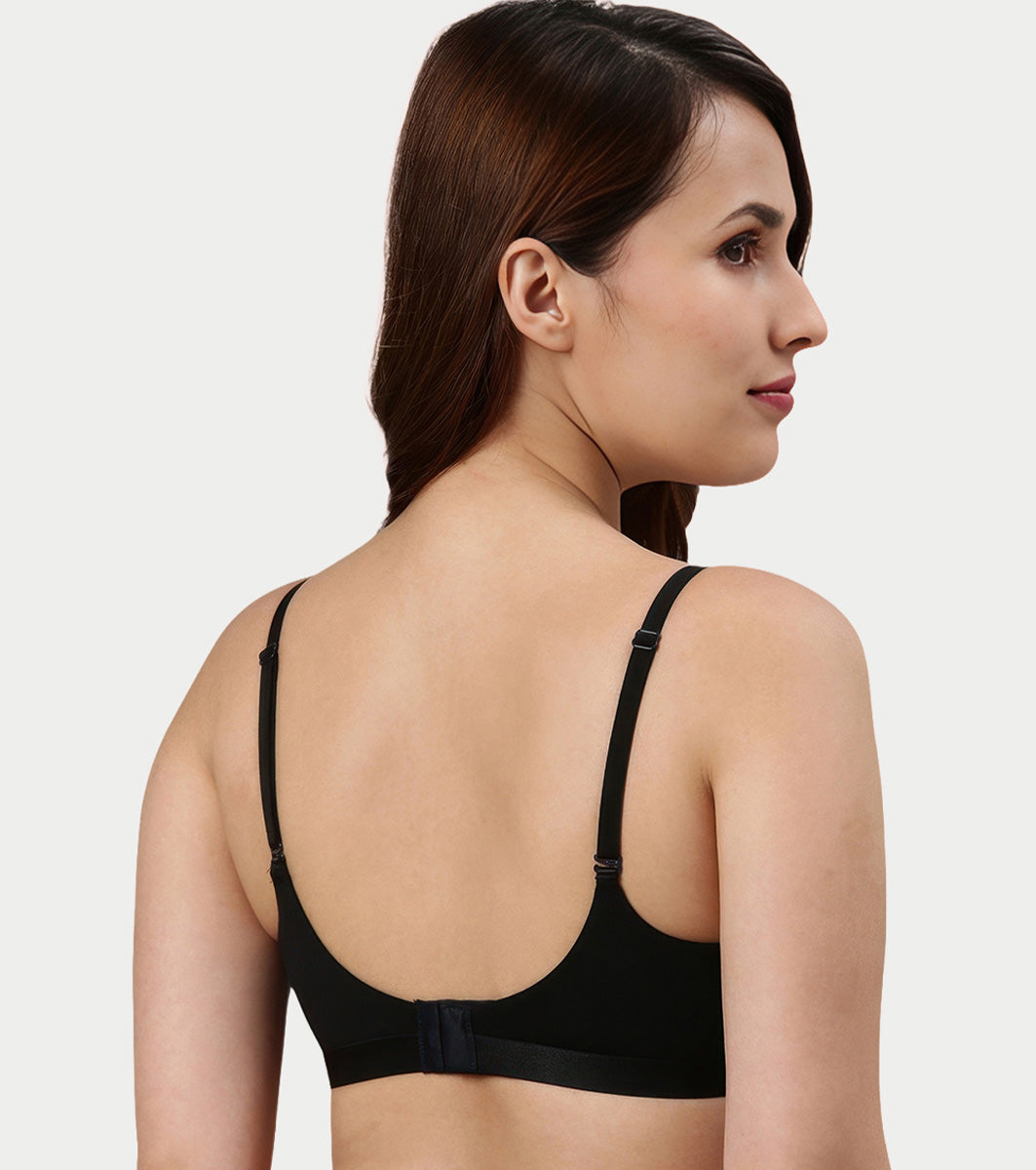 Enamor Innovations CloudSoft, Invisi Neckline Women's Cotton Everyday T-Shirt Bra - Padded, Wirefree, Medium Coverage - A032 (Black)