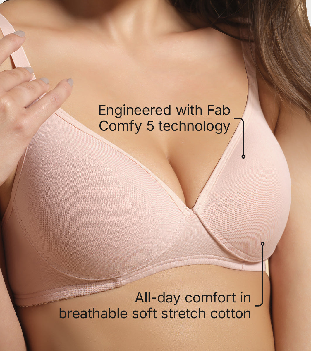 - Engineered with Fab Comfy 5 technology, this bra supports you with gentle support, soft hold straps, flexi-grip elastic and gives you perfect shape and coverage