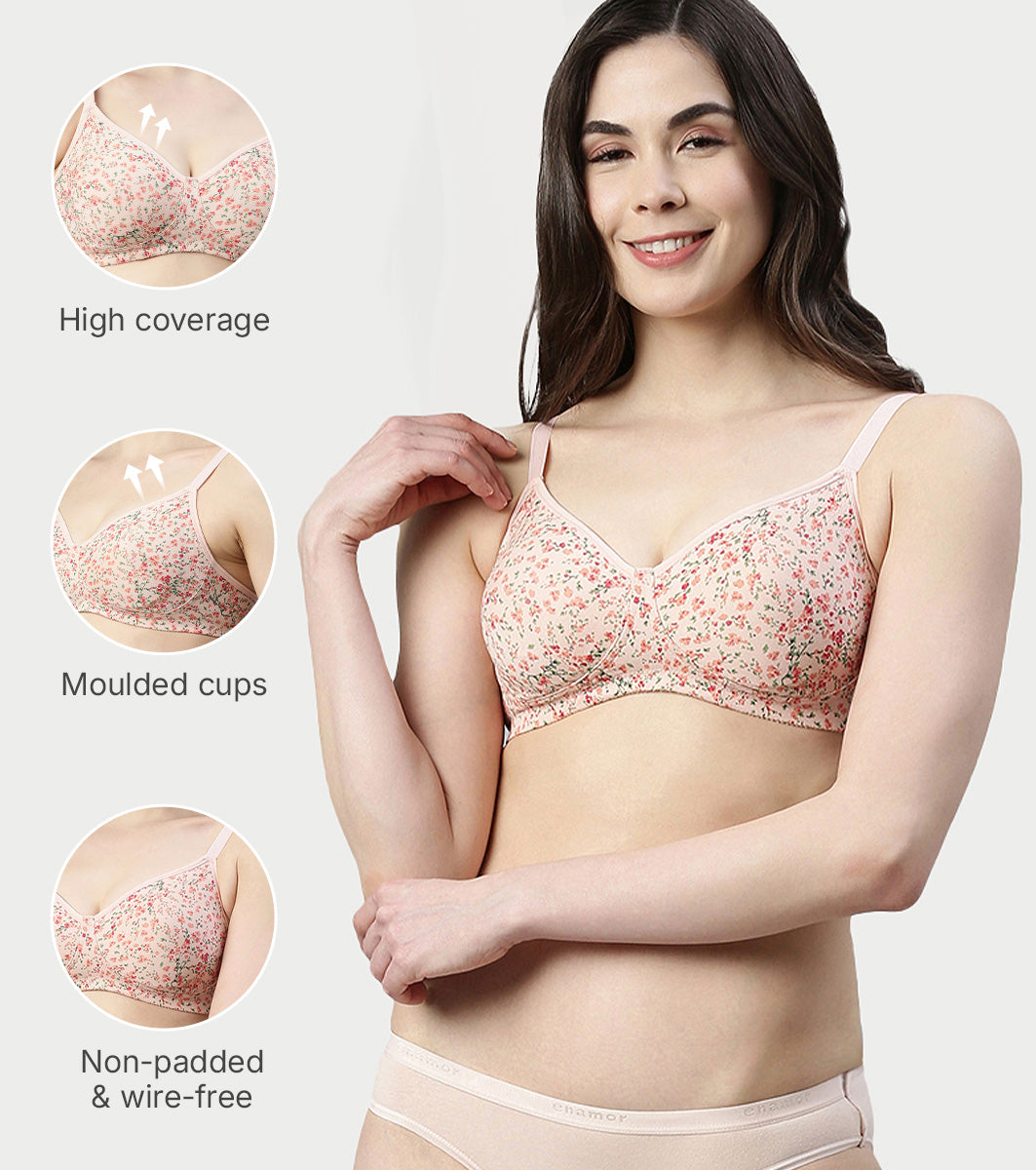 Enamor Innovations Fabcool Encircled Side Support Shaper, Non Padded, Wirefree, High Coverage, Women's Cotton Everyday Bra - A042 (Available in Plus Sizes) (Revello Print)