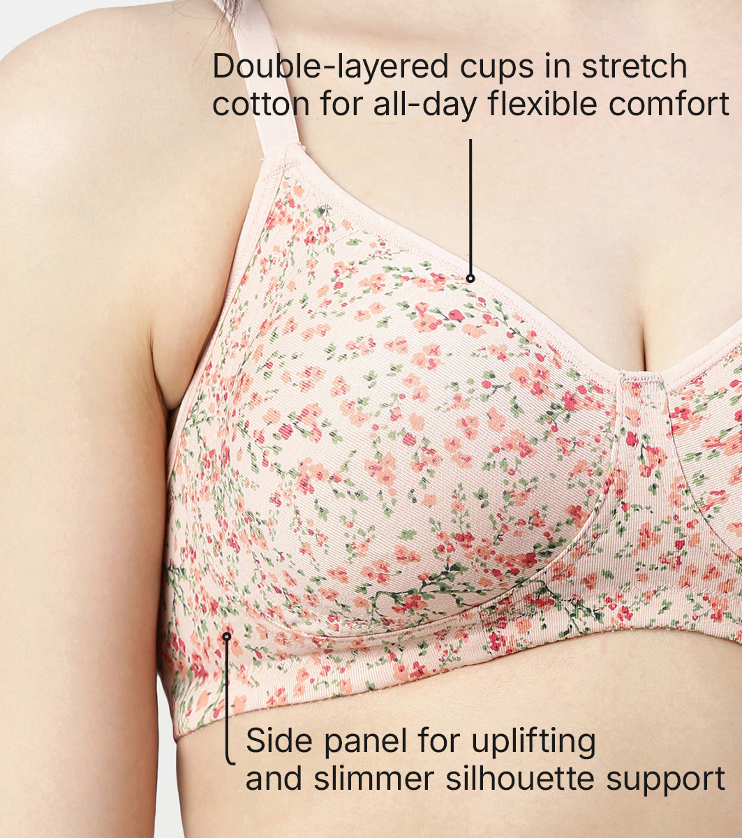 Engineered with Fab Comfy 5 technology, this bra supports you with gentle support, soft hold straps, and flexi-grip elastic and gives you perfect shape and coverage for all-day comfort.