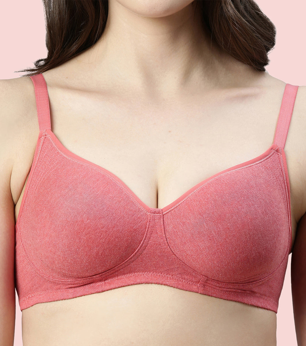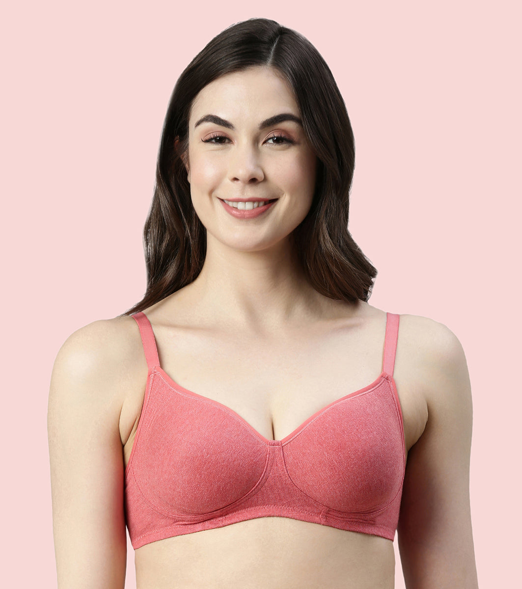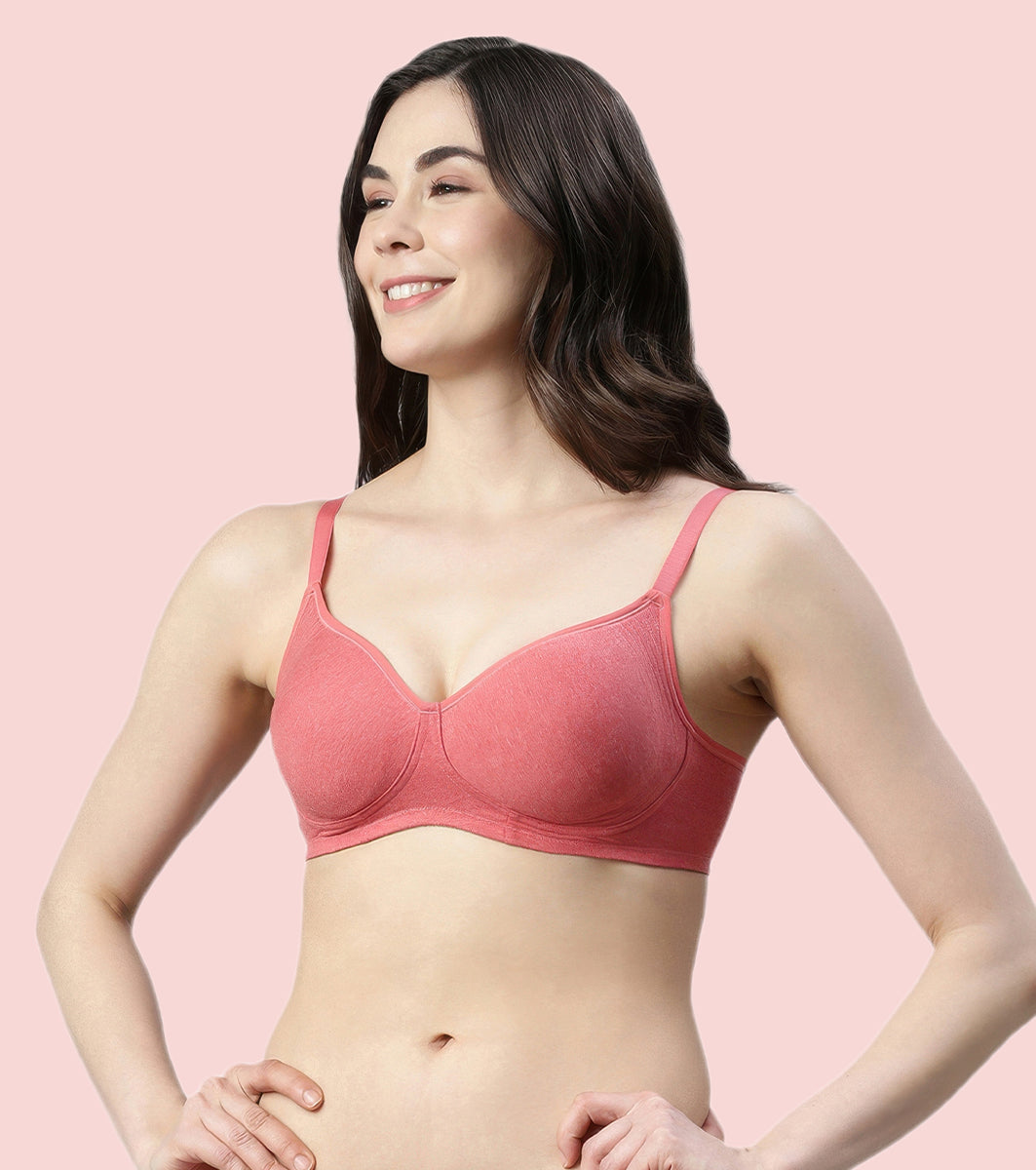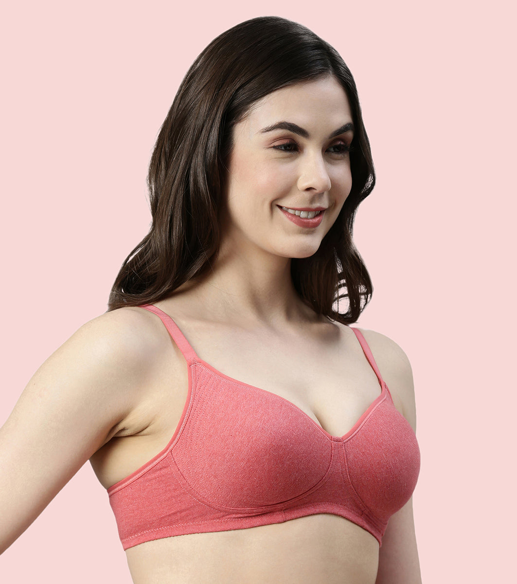 Enamor Innovations Fabcool Encircled Side Support Shaper, Non Padded, Wirefree, High Coverage, Women's Cotton Everyday Bra - A042 (Available in Plus Sizes) (Tomato Melange)