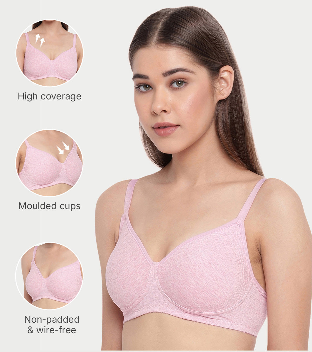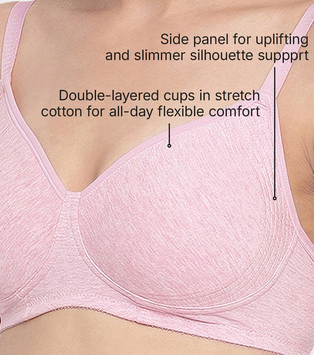 Enamor Innovations Fabcool Encircled Side Support Shaper, Non Padded, Wirefree, High Coverage, Women's Cotton Everyday Bra - A042 (Available in Plus Sizes) (Orchid Melange)
