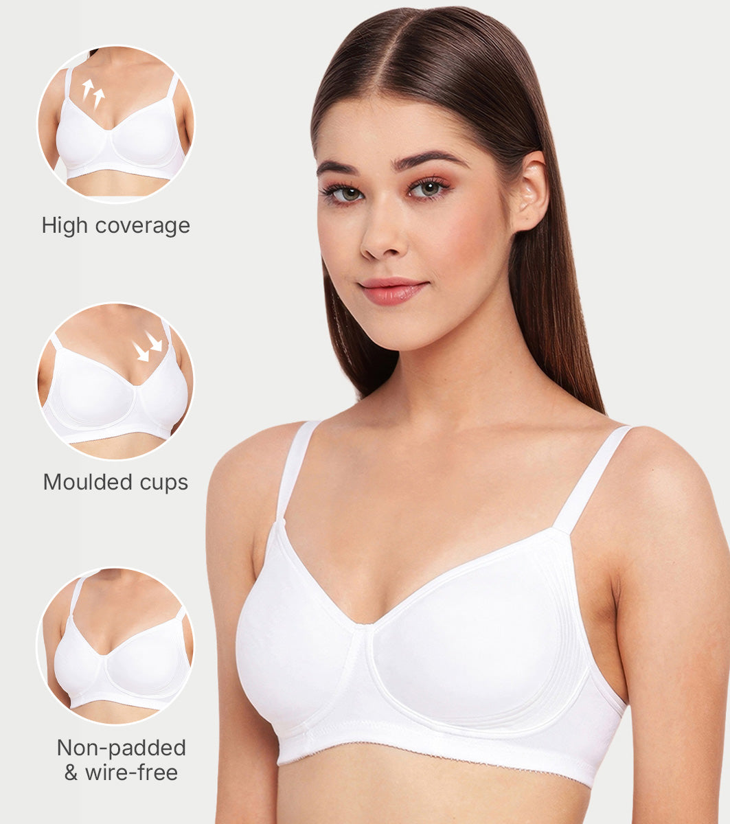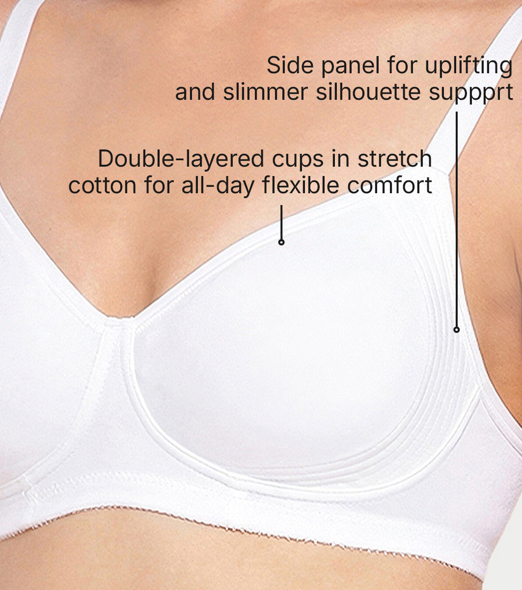 Enamor Innovations Fabcool Encircled Side Support Shaper, Non Padded, Wirefree, High Coverage, Women's Cotton Everyday Bra - A042 (Available in Plus Sizes) (White)