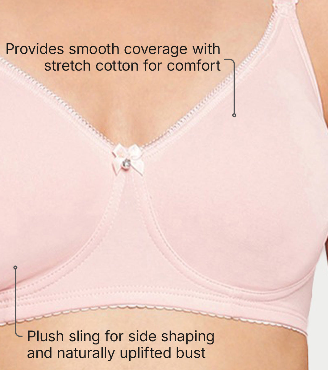 Enamor Comfort Shaper with Plush Side Shaper Panel Women's Cotton Everyday T-Shirt Bra - Detachable Straps, Non Padded, Wirefree, High Coverage - A055 (Pearl)