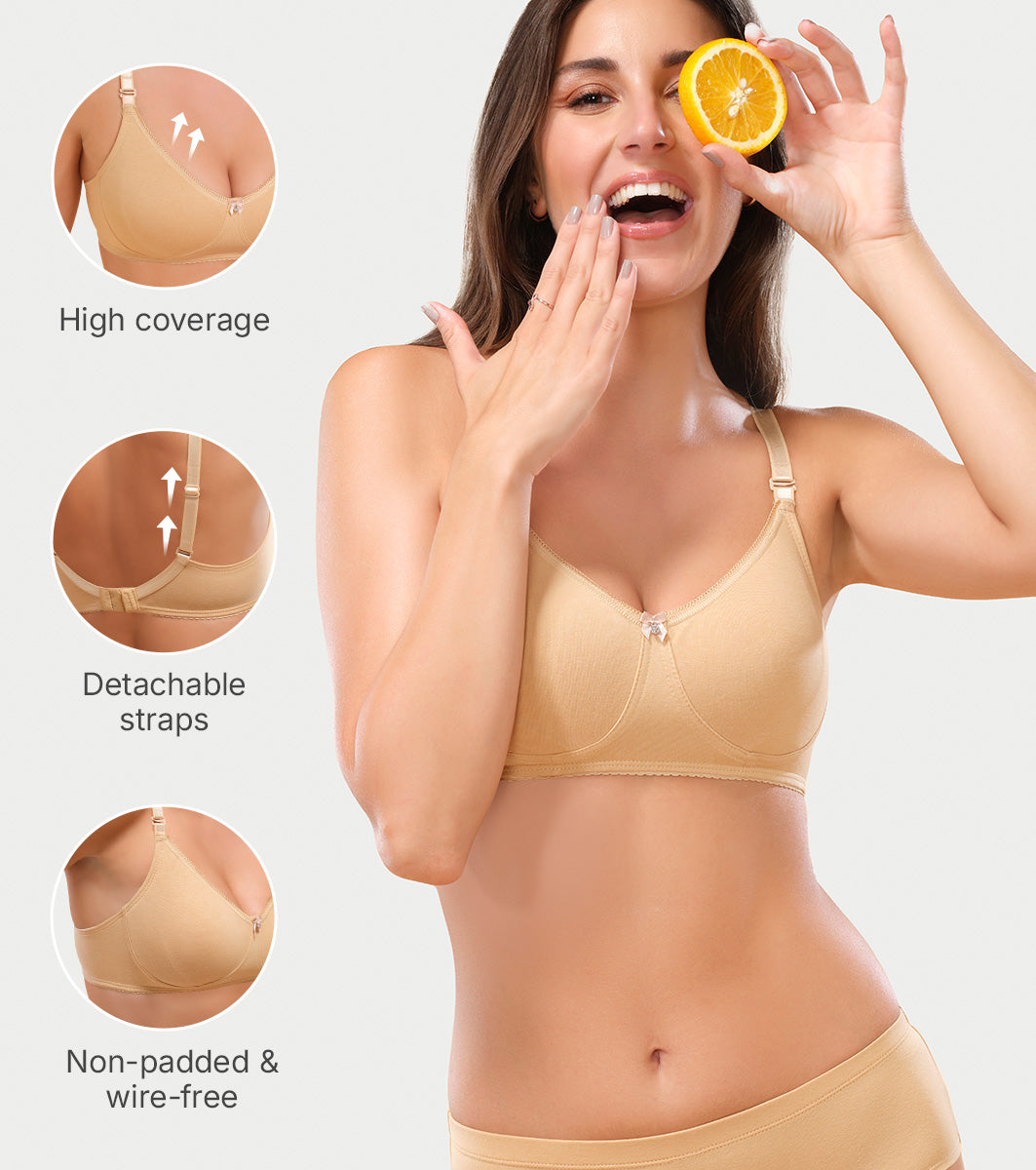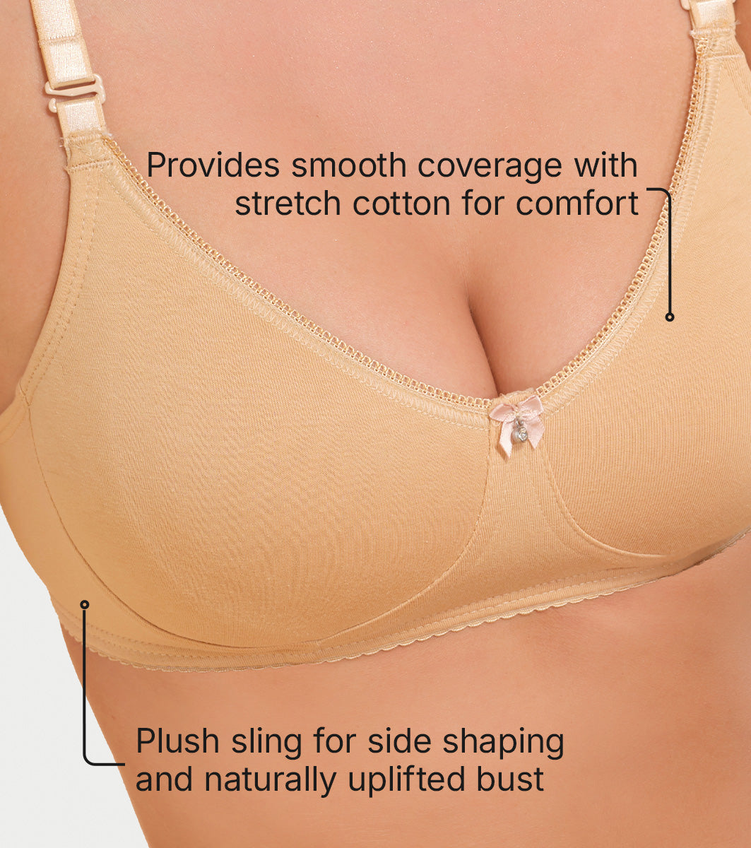Enamor Comfort Shaper with Plush Side Shaper Panel Women's Cotton Everyday T-Shirt Bra - Detachable Straps, Non Padded, Wirefree, High Coverage - A055 (Skin)