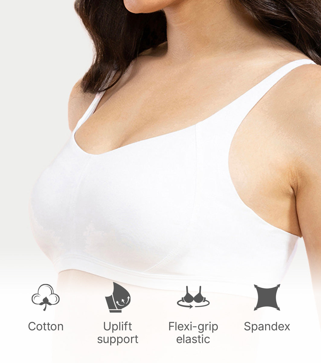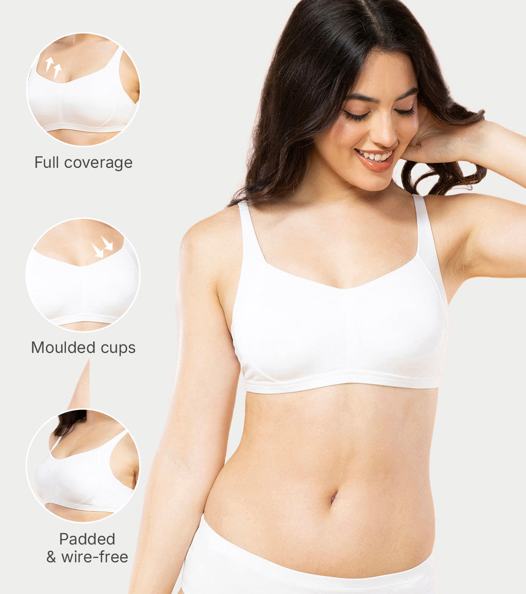 Enamor Innovations Intellifresh Antimicrobial Minimizer Everyday Cotton Bra for Women - Padded, Wirefree, Full Coverage - A058 (White) (White)