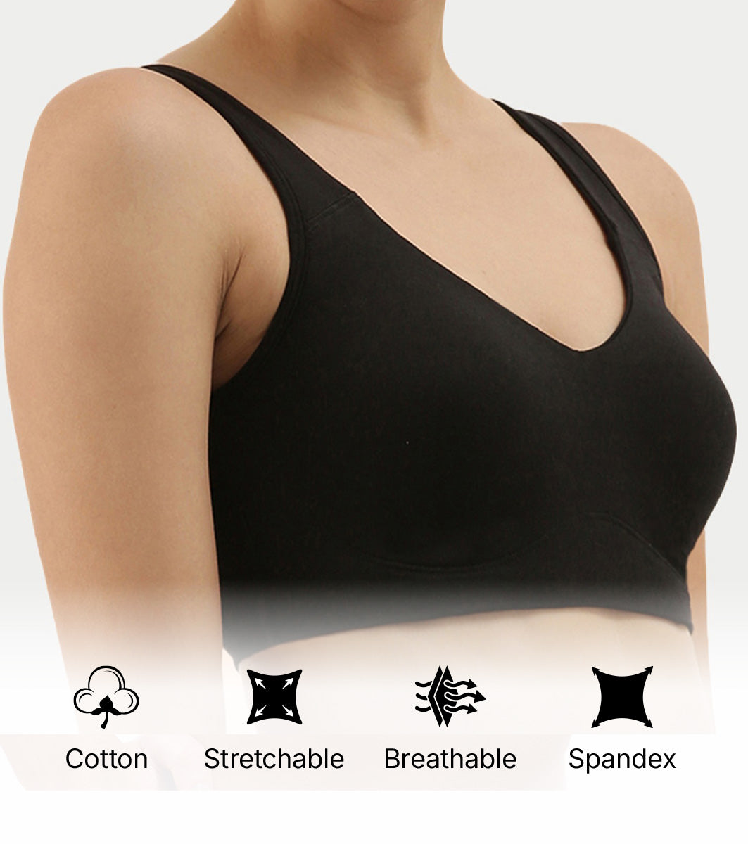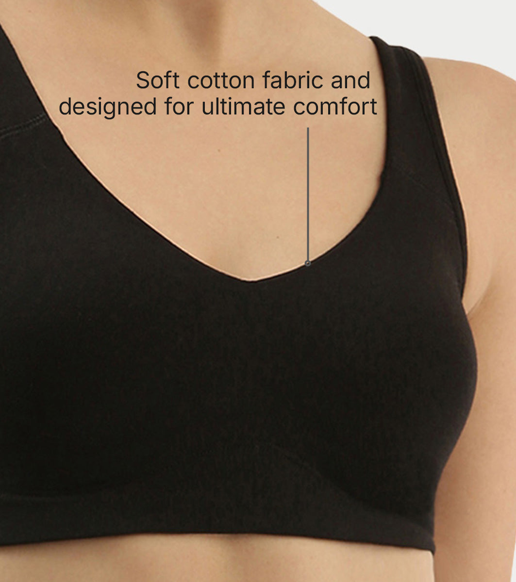 Enamor Easy Slip-On and Back Keyhole Women's Cotton Everyday Beginner's Bra - Padded, Wirefree, Full Coverage - A106 (Black)