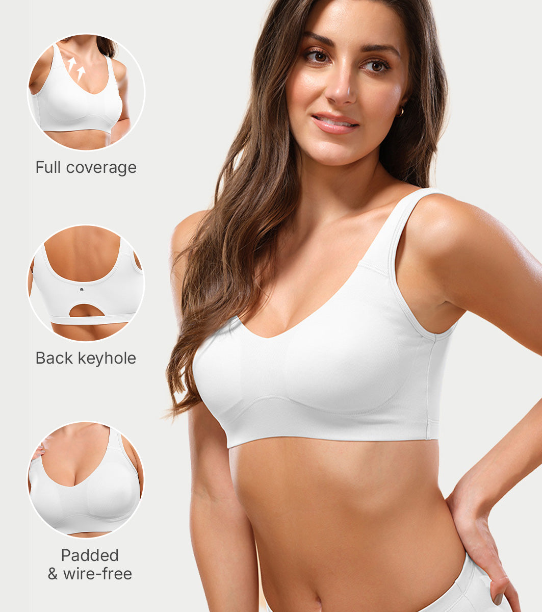 Enamor Easy Slip-On and Back Keyhole Women's Cotton Everyday Beginner's Bra - Padded, Wirefree, Full Coverage - A106 (White)