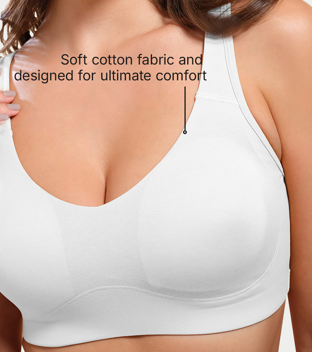 This leisure bra is made from soft cotton fabric and designed for ultimate comfort. With its stretchable and breathable material, you can wear it all day with ease. The bra offers gentle support, a seamless design, and is perfect for lounging or running errands. Get ready to say goodbye to uncomfortable bras and hello to all-day comfort!