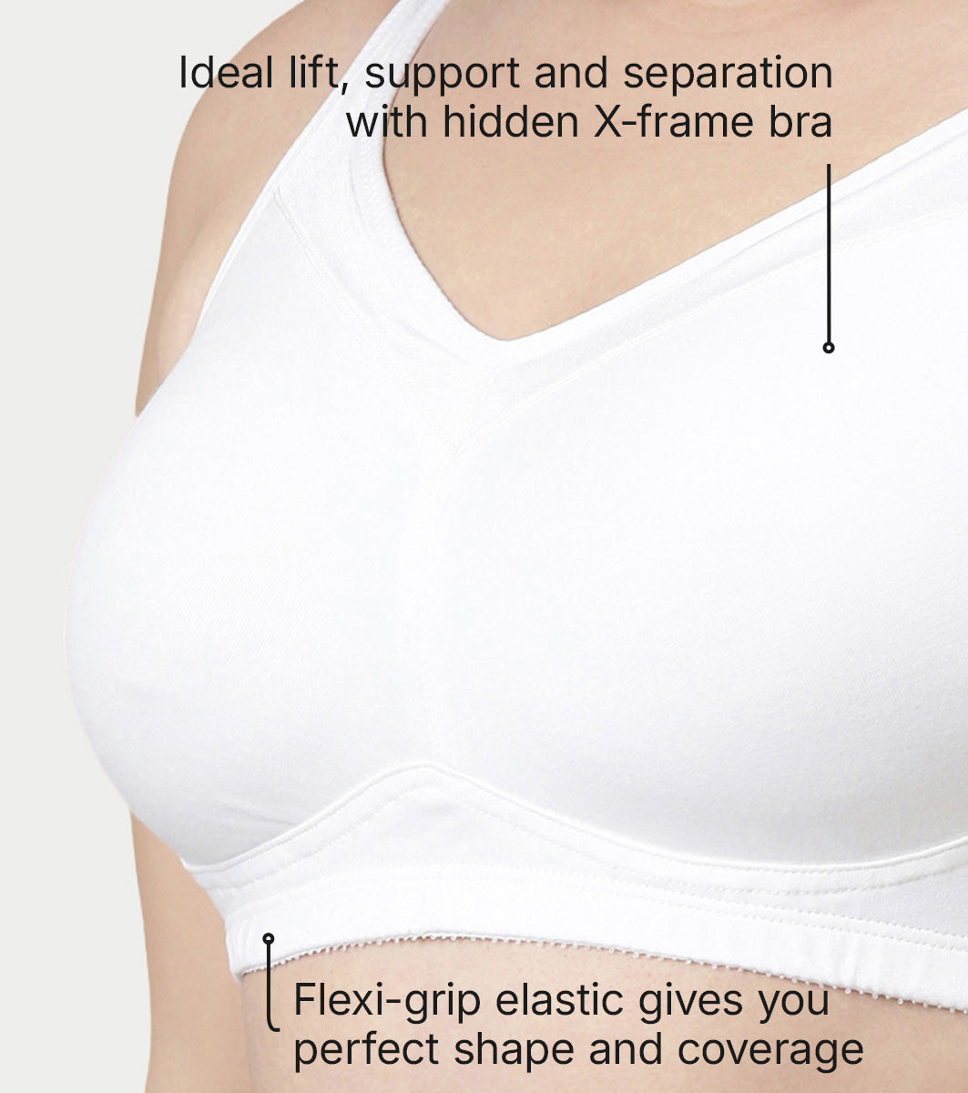 - Ideal lift, support and separation in this hidden X-frame bra