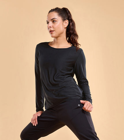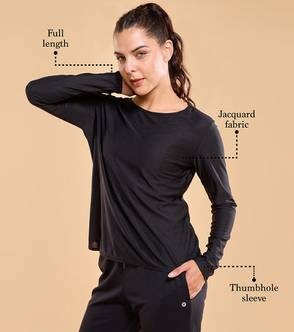 Enamor A312 Jacquard Long Sleeve Relaxed Fit Regular Length T-Shirt