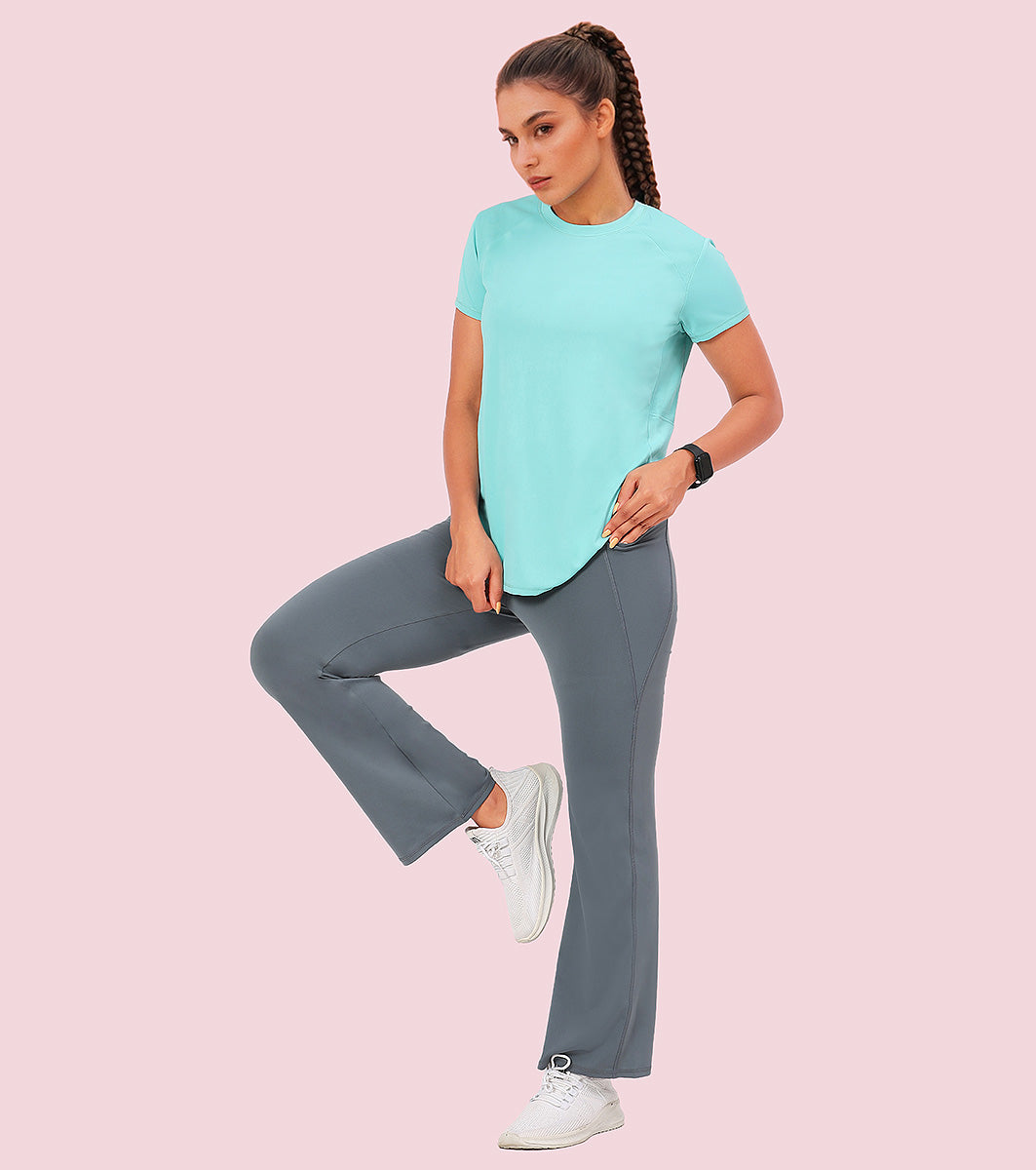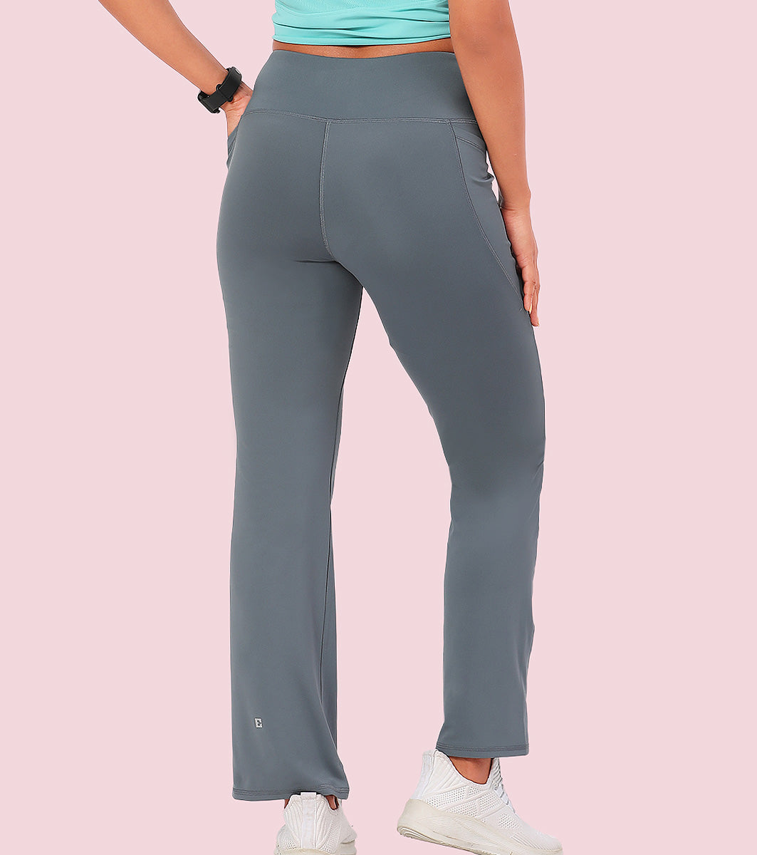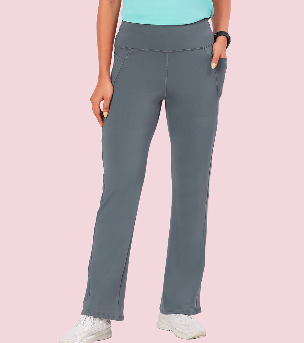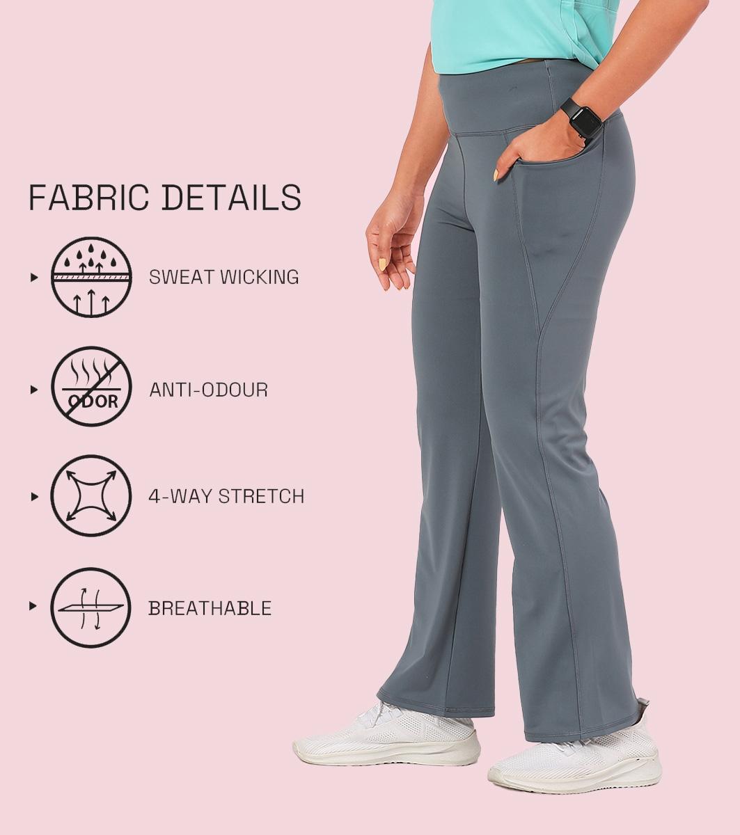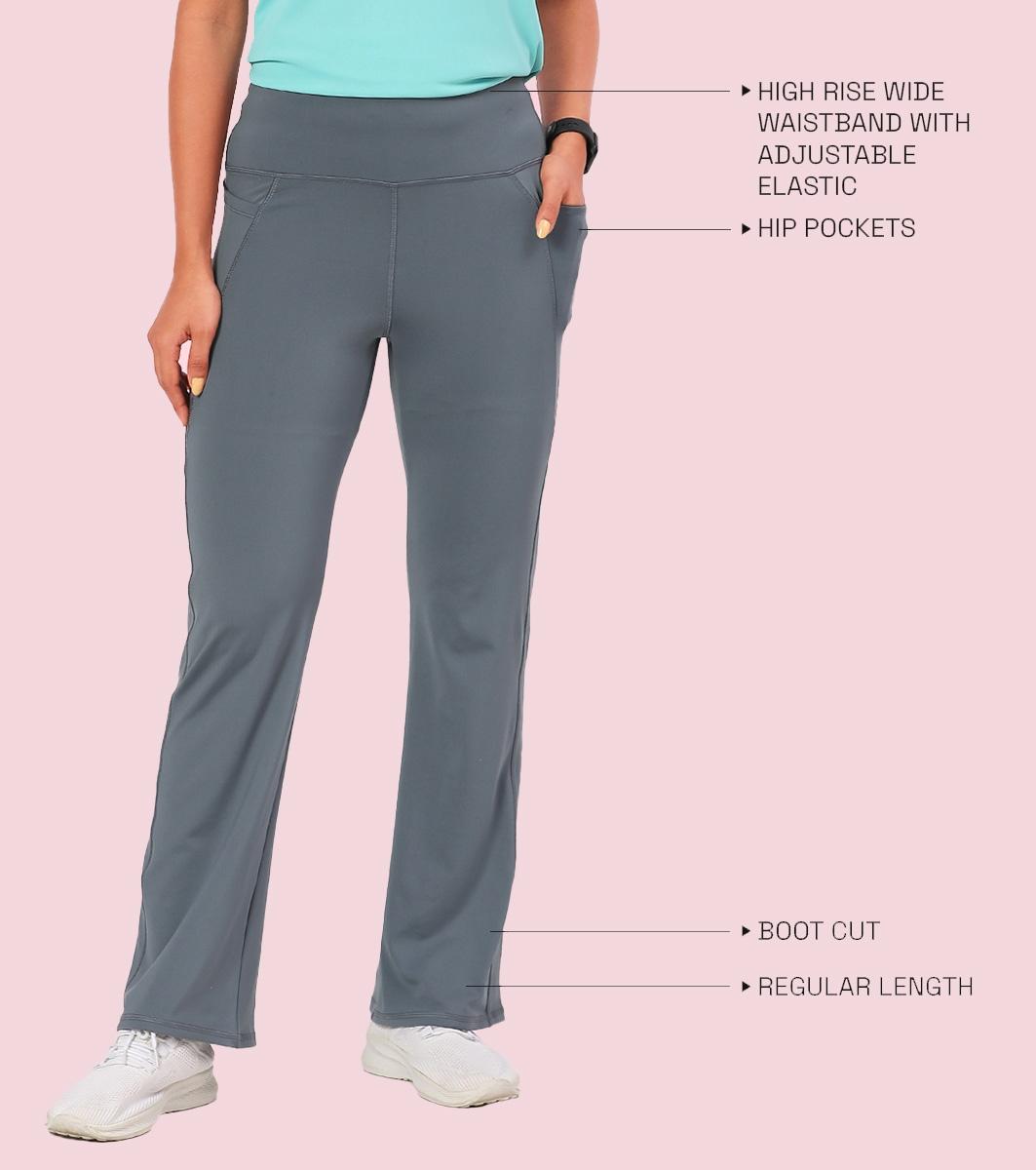 Enamor High Rise Full Length Pull on Boot Cut Active Pant For Women - Relaxed Fit, Quick Dry, Antimicrobial - A402 (Cloud Grey)