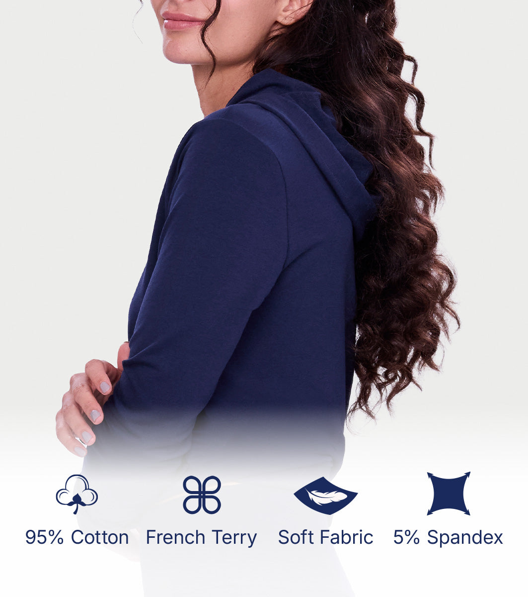 95% Cotton, 5% Spandex – Super-soft French terry that’s, cozy, and flexible for all-day wear.