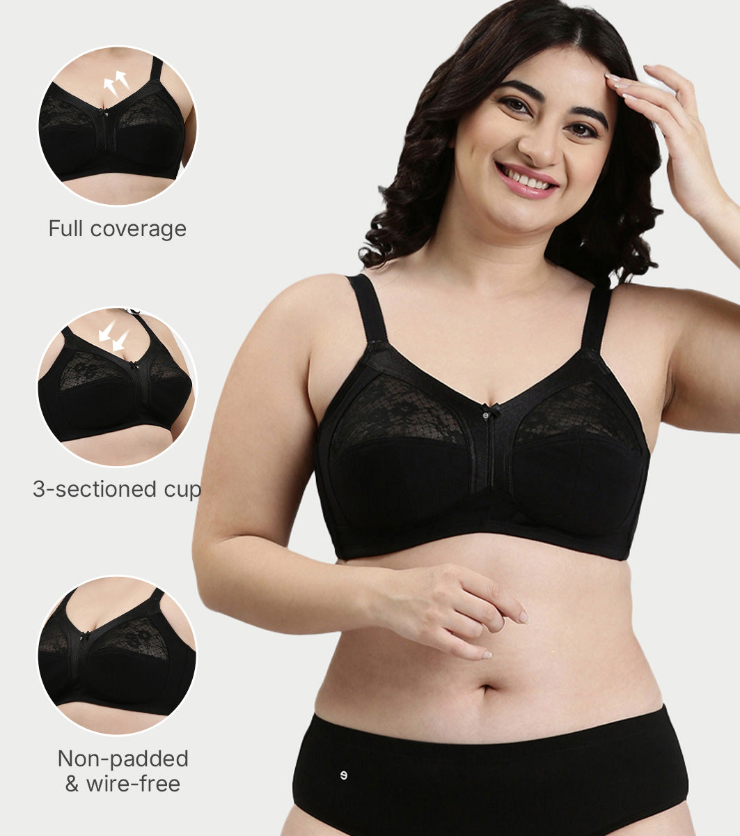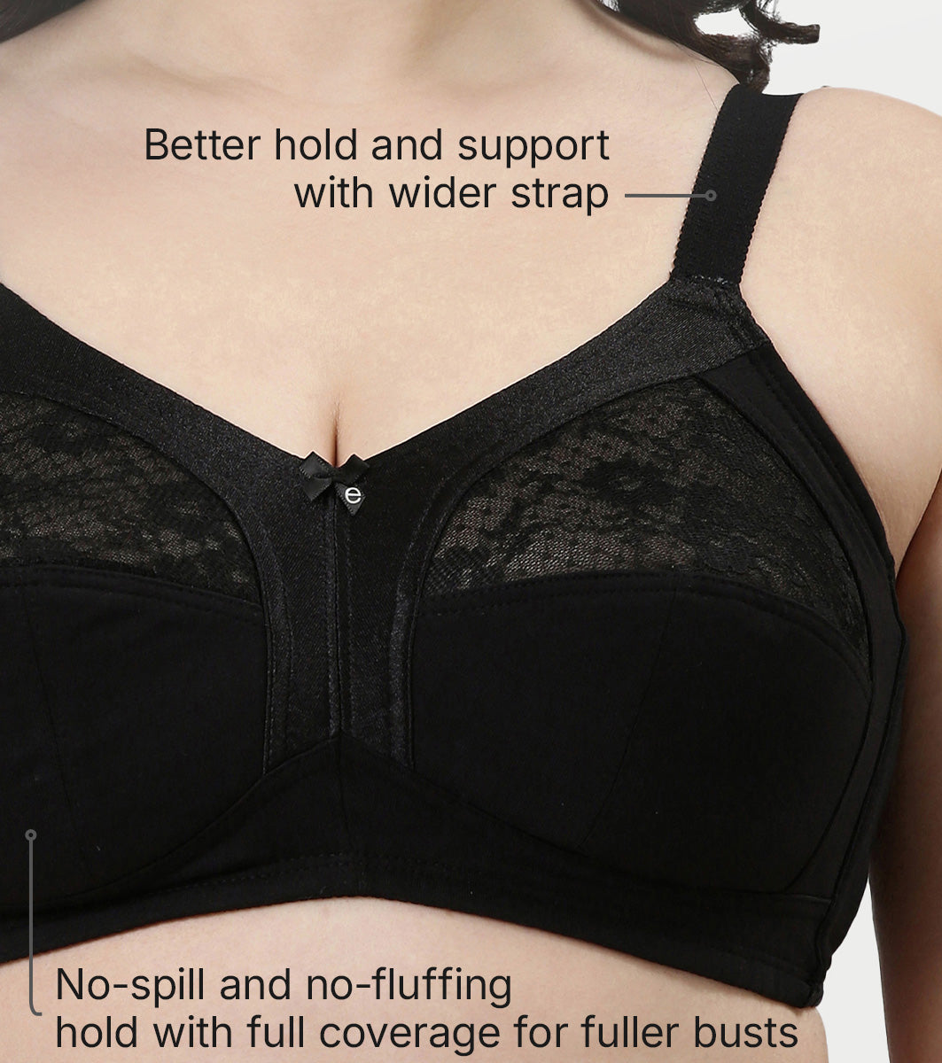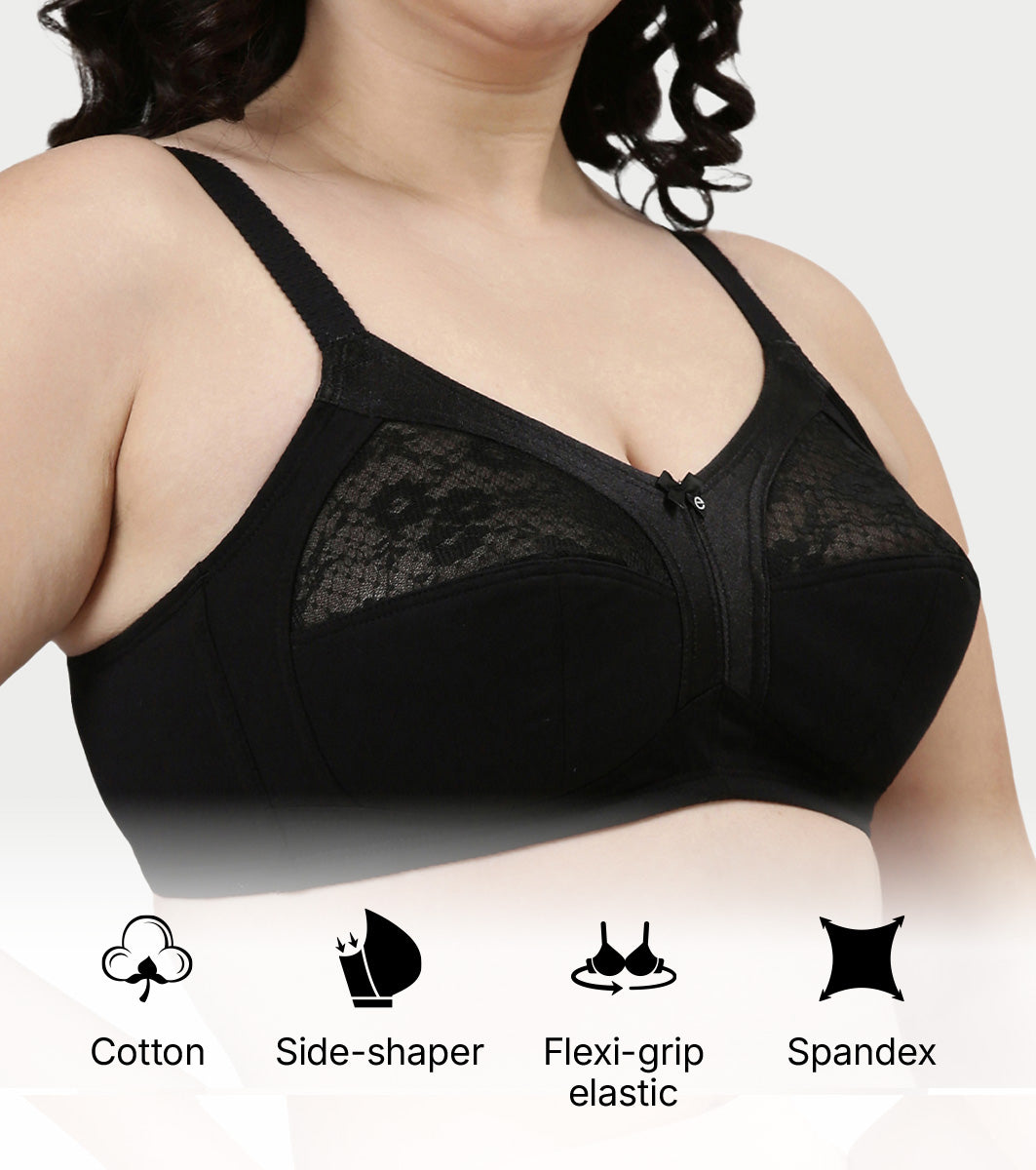 Enamor Innovations Fabcool M-Frame Side Shaper Panel Women's Cotton Everyday Bra - Non Padded, Wirefree, Full Coverage - A014 (Available in Plus Sizes) (Black)