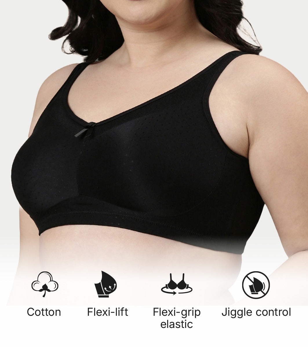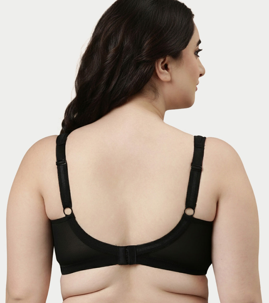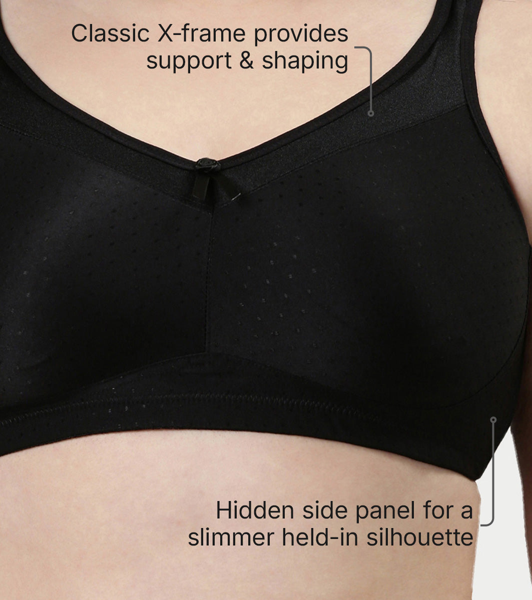 Enamor Hidden X-Frame and Smoothening Women's Full Support Everyday Bra - Jiggle control, Non Padded, Wirefree, Full Coverage - FB12 (Available in Plus sizes) (Black)