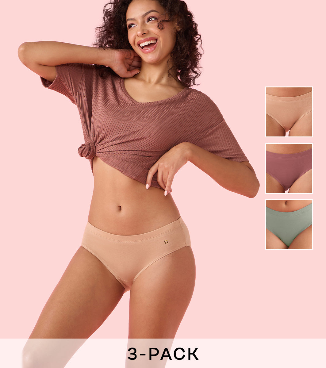 Enamor Chic Stretch Cotton, All Day Comfort, Mid Waist Hipster Panty for Women - Naturally Breathable, Antimicrobial with Stain release, Inner Elastic, Full Coverage - CR17 Pack of 3 (Multicolordark)