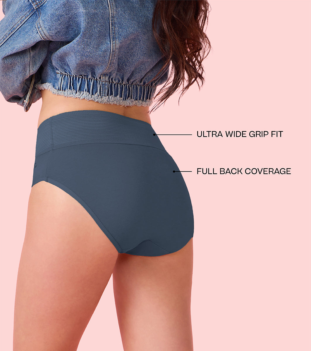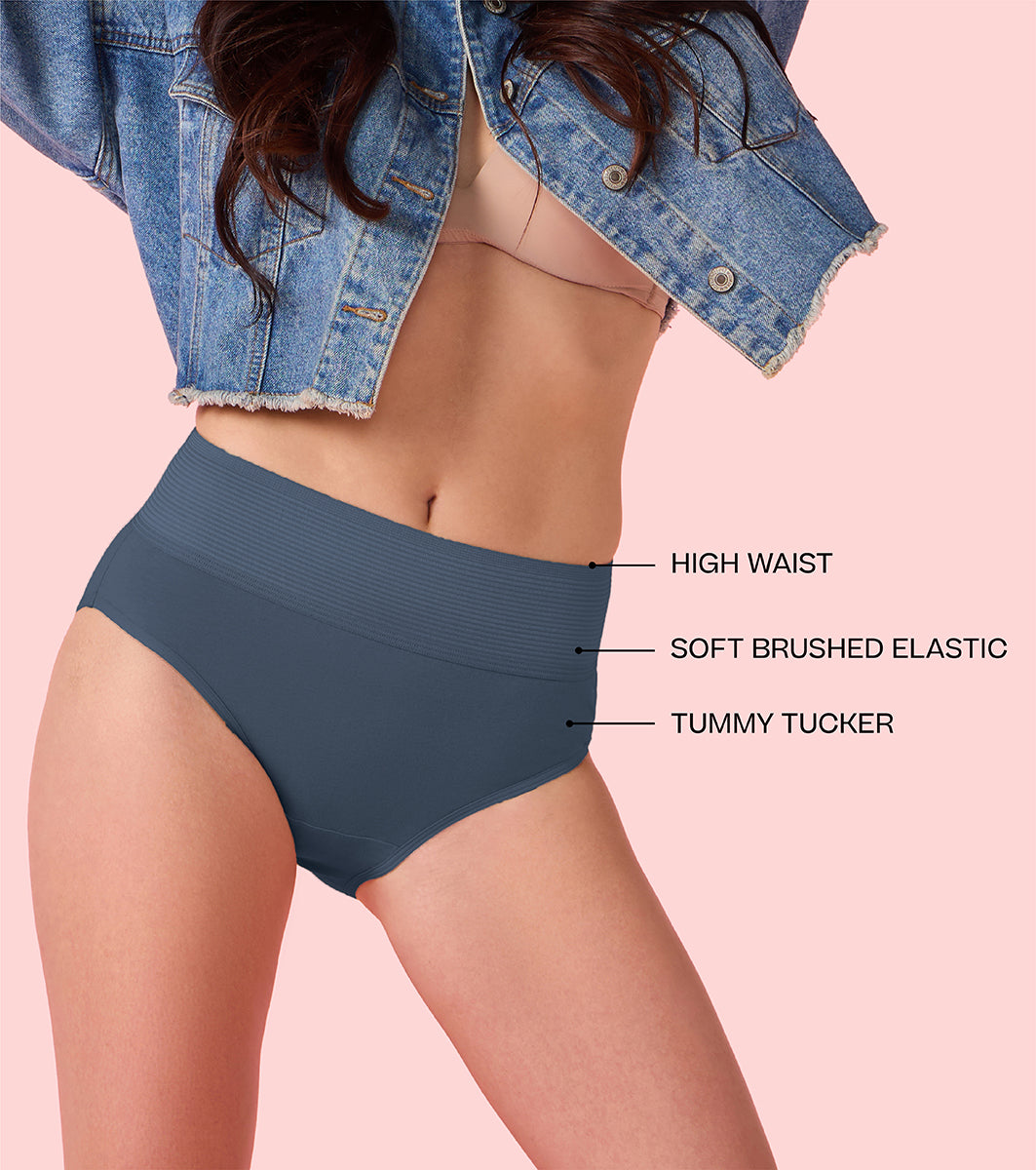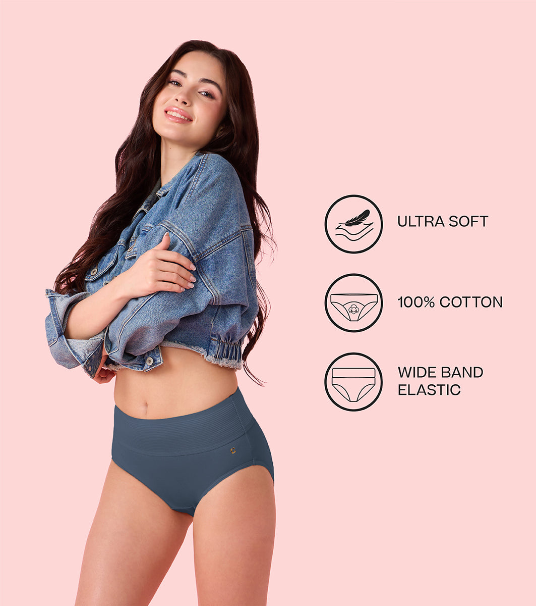 Enamor Cotton Classic, All Day Comfort, High Waist Brief - Breathable, Antimicrobial with Stain Release, Outer Brushed Wide Elastic, Full Coverage - CW01 (Orion Blue)