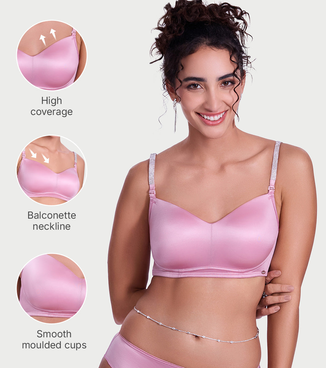 Enamor Curve Enhancing Satin T-Shirt Bra - Padded, Non-Wired, High Coverage - F184 (Cosmetic Pink)