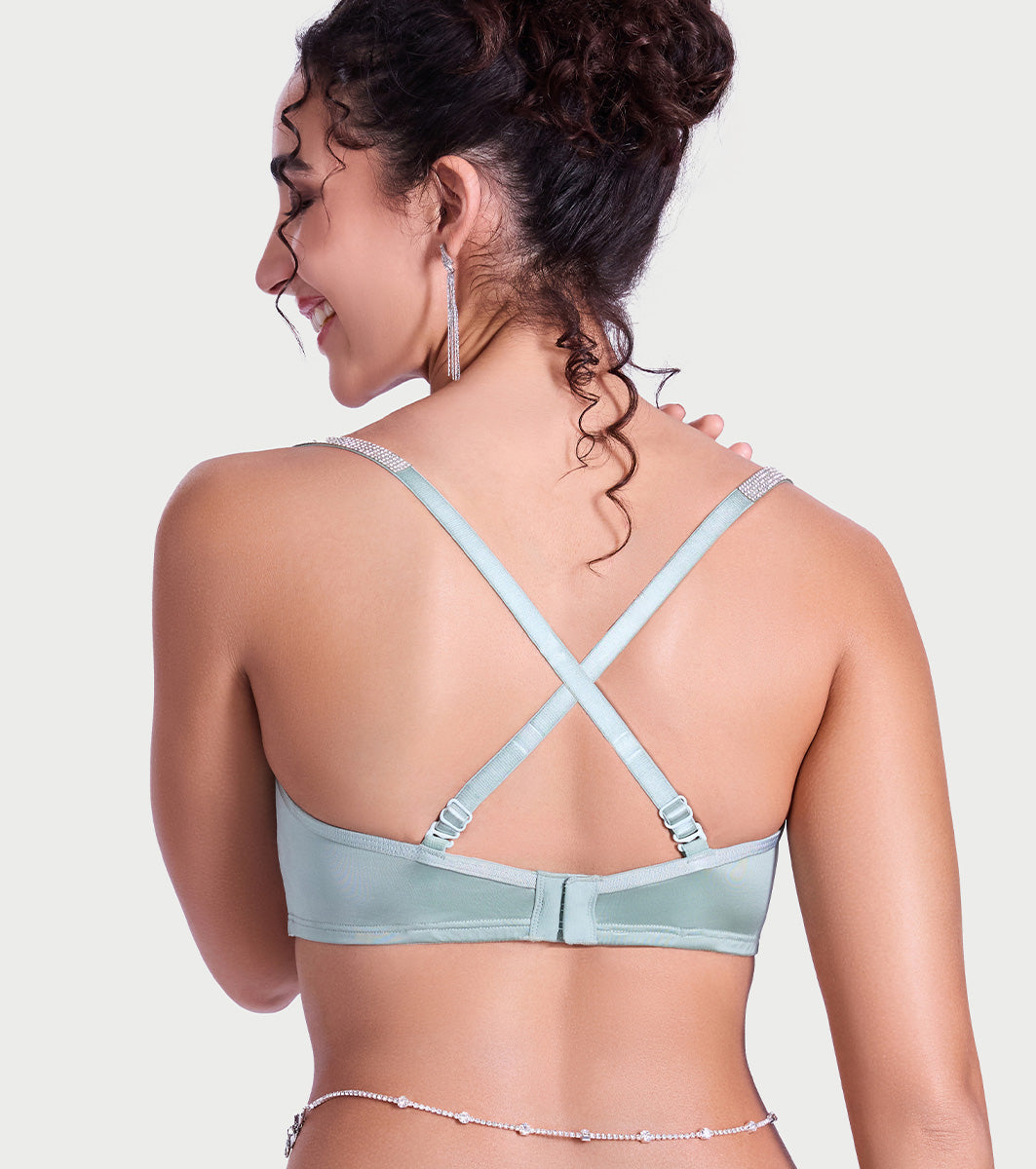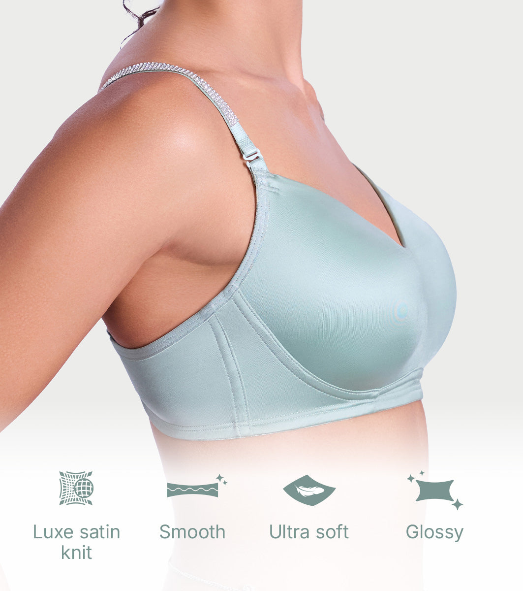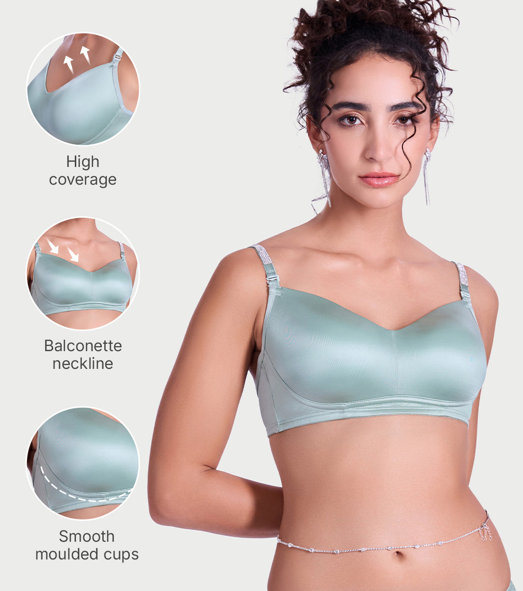 Enamor Curve Enhancing Satin T-Shirt Bra - Padded, Non-Wired, High Coverage - F184 (Iceberg Green)