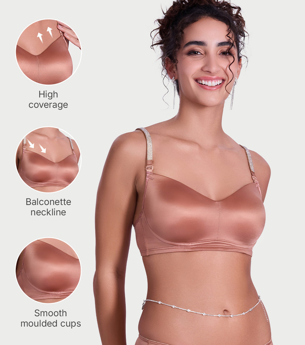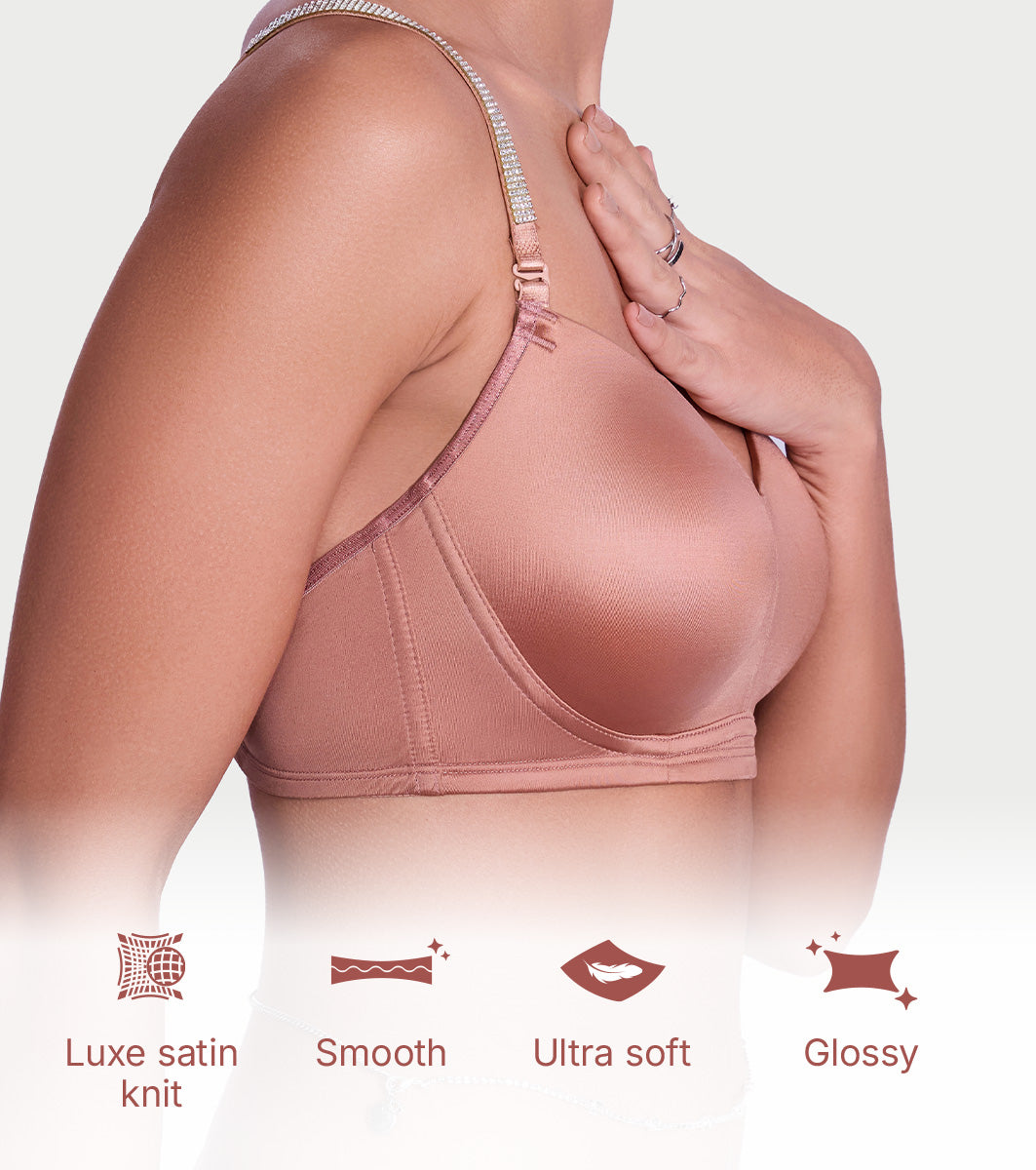 Enamor Curve Enhancing Satin T-Shirt Bra - Padded, Non-Wired, High Coverage - F184 (Mocha Brown)
