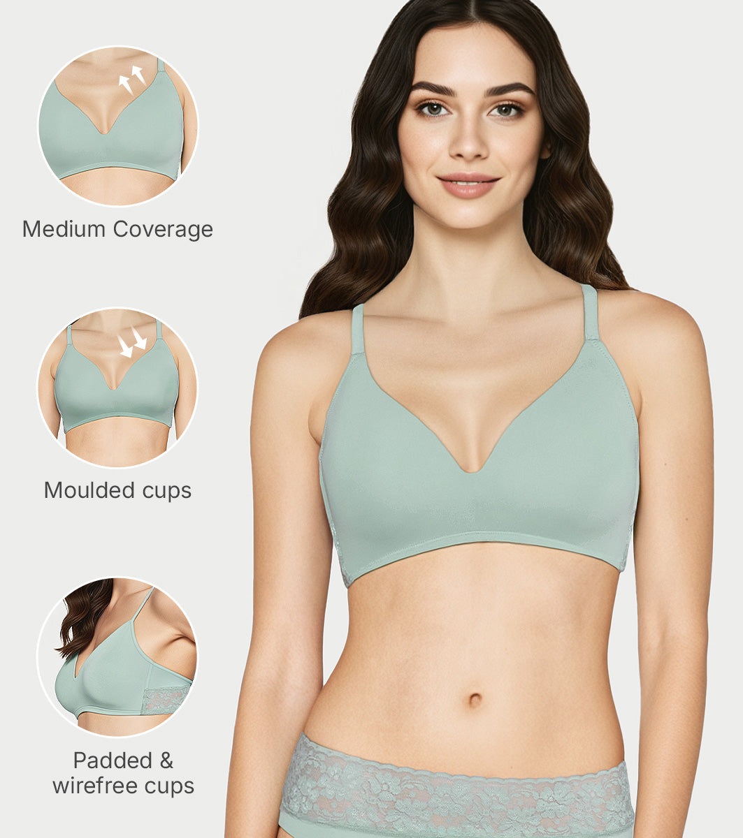 Enamor Drip T Shirt Bra for Women Padded, Wire-Free, Medium Coverage - SMB03 (Sage Green)
