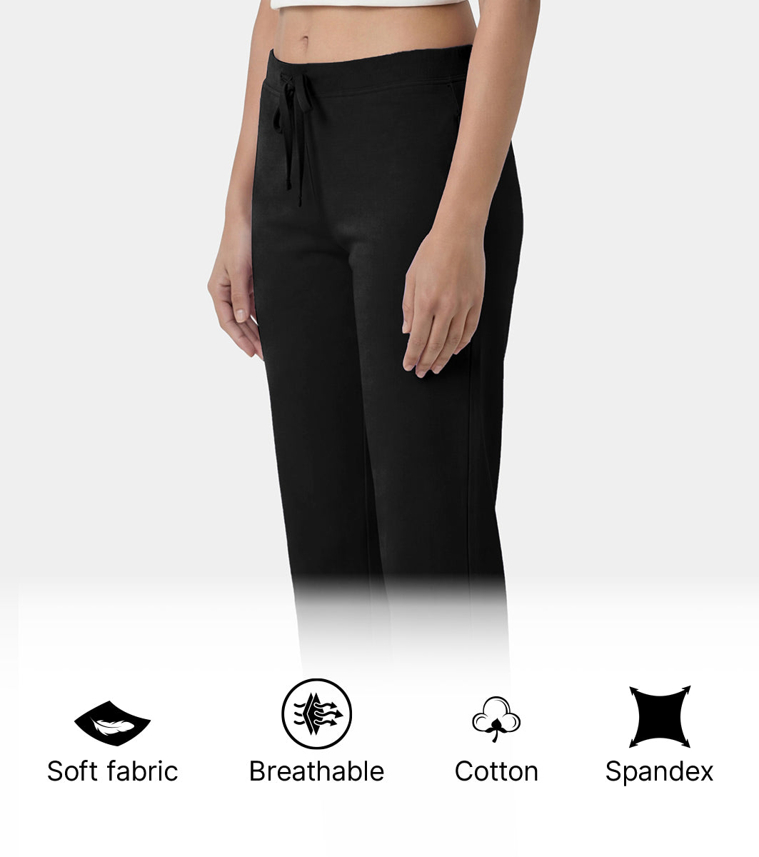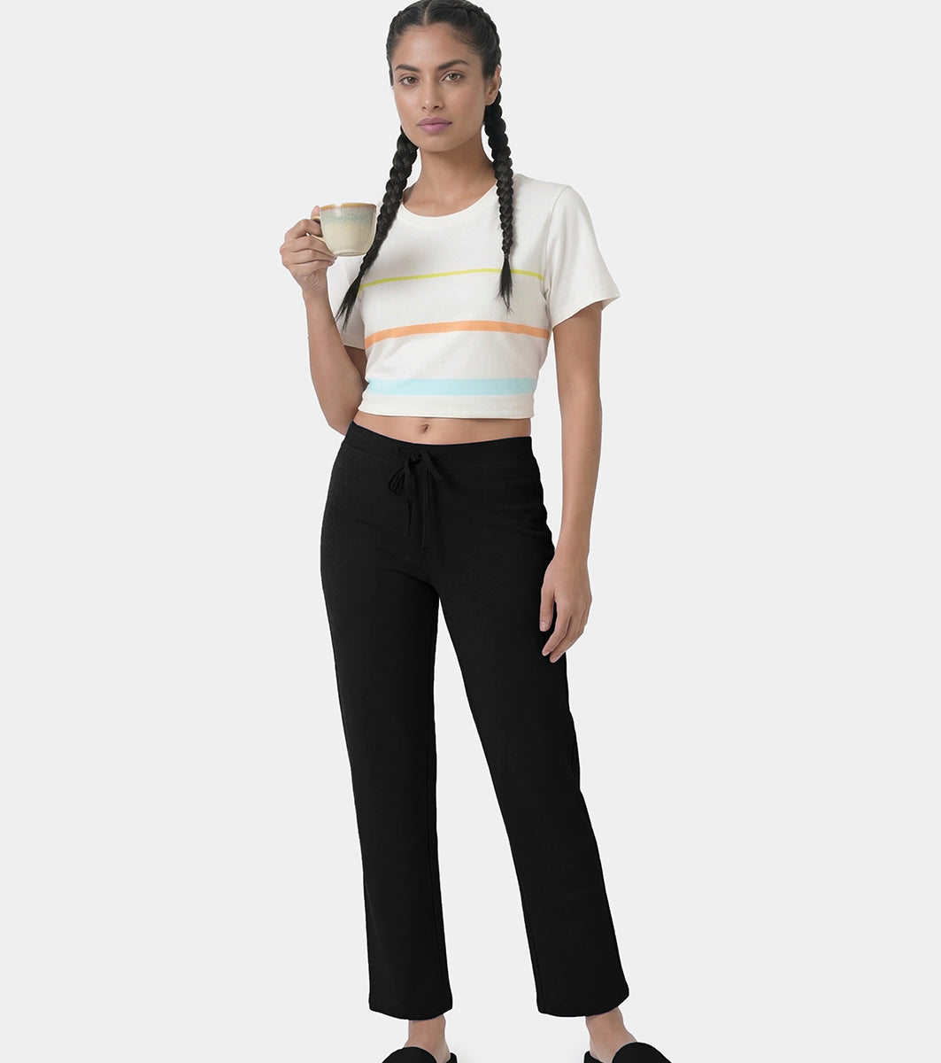 Enamor Mid Rise Regular Length Drawstring Closure Lounge Pants For Women - Slim Fit, Soft and Breathable Stretch Cotton - E014 (Jet Black)
