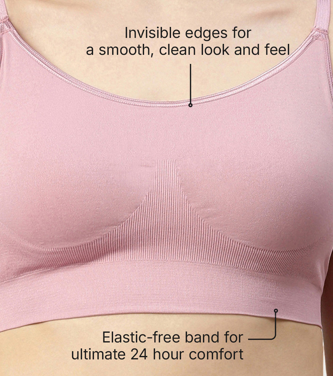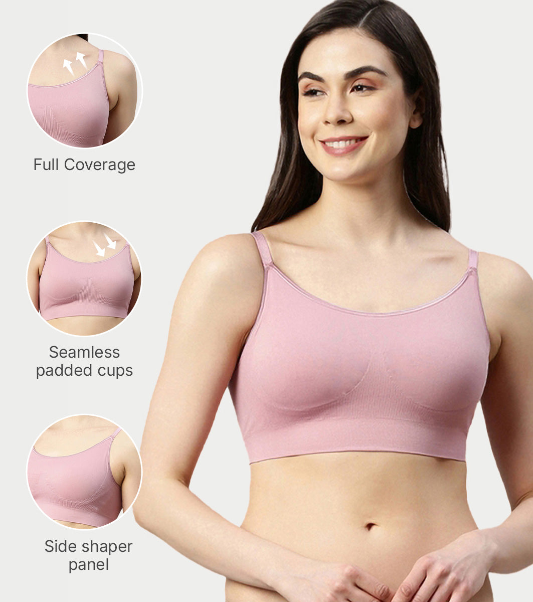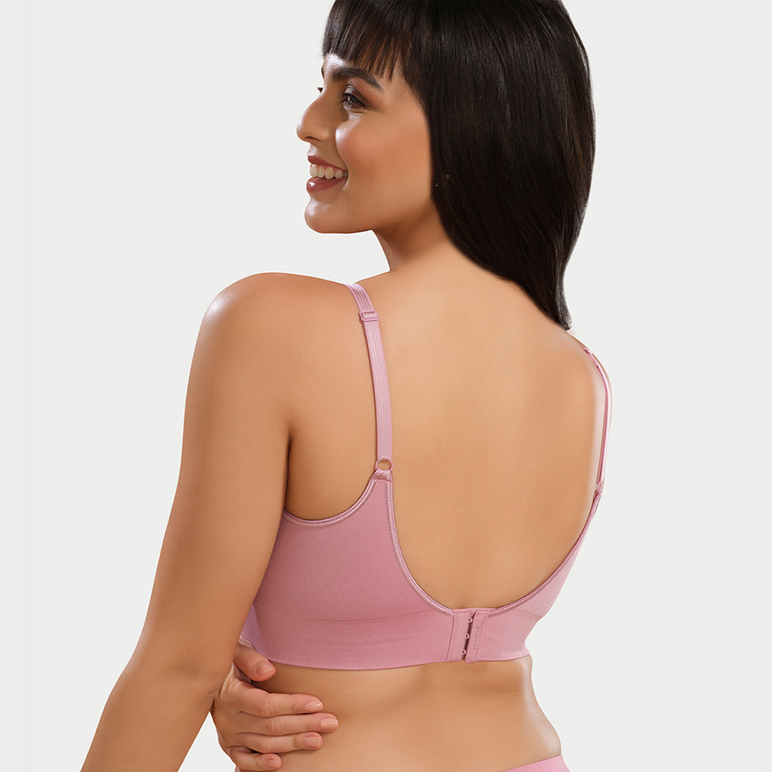 Enamor FlexiFree F037 Ultimate Comfort Seamless No -pinch T-shirt Bra for Women- High Coverage, Padded and Wirefree - Orchid Smoke