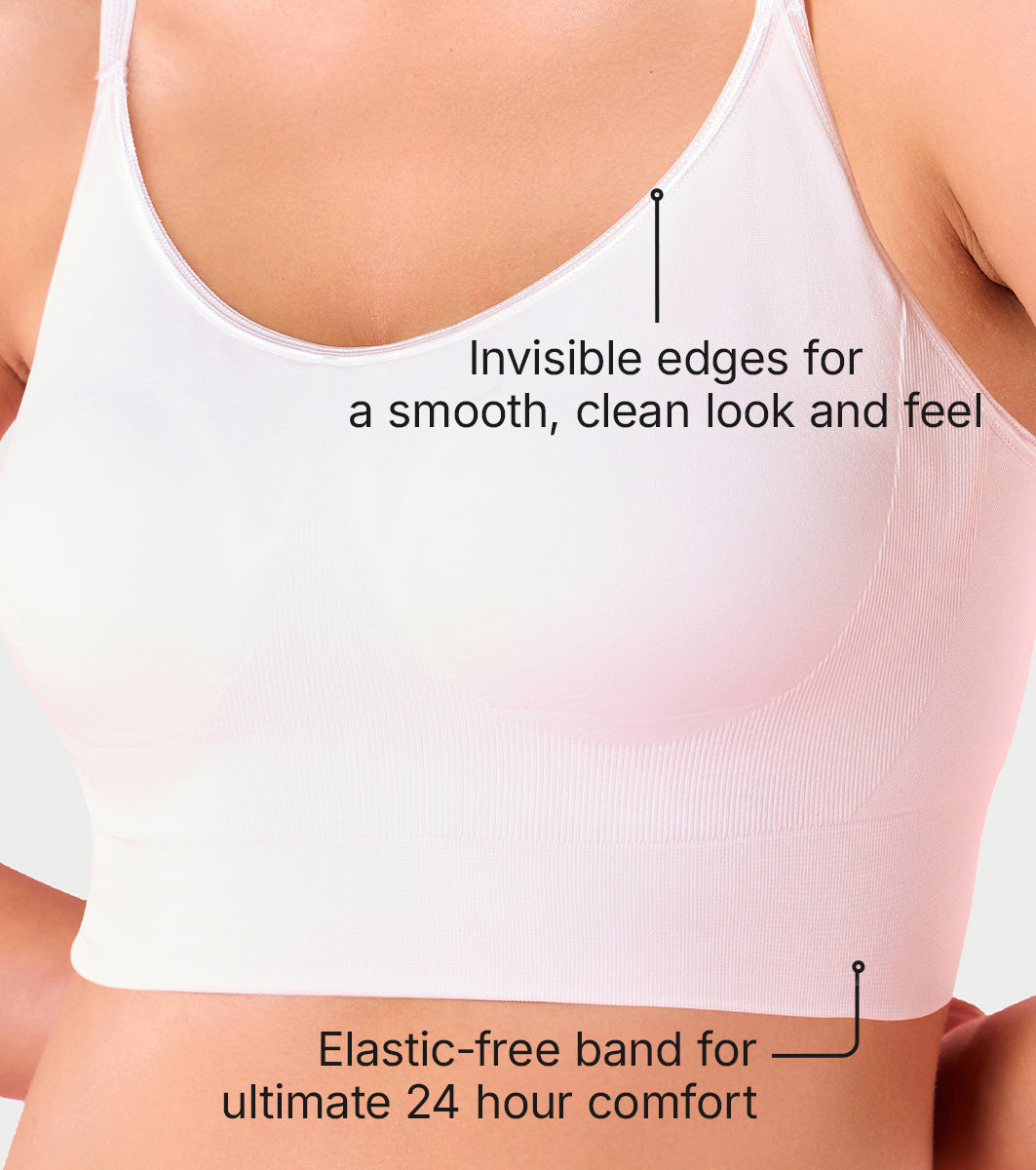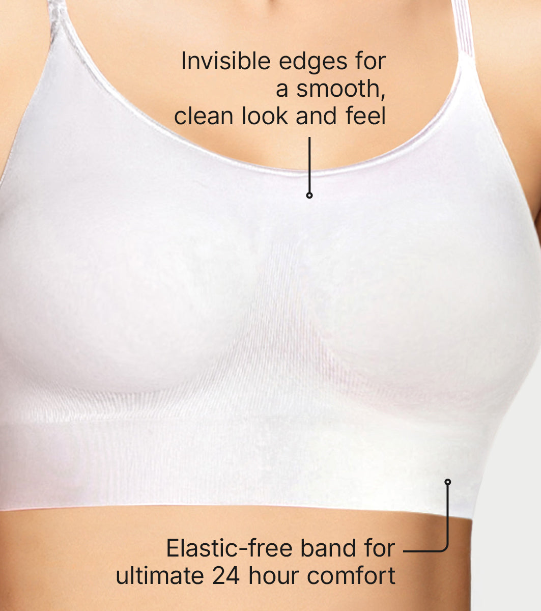 The invisible edges of the bra provides a smooth, clean look and feel. The elastic-free band makes it the ultimate 24 hour comfort bra.