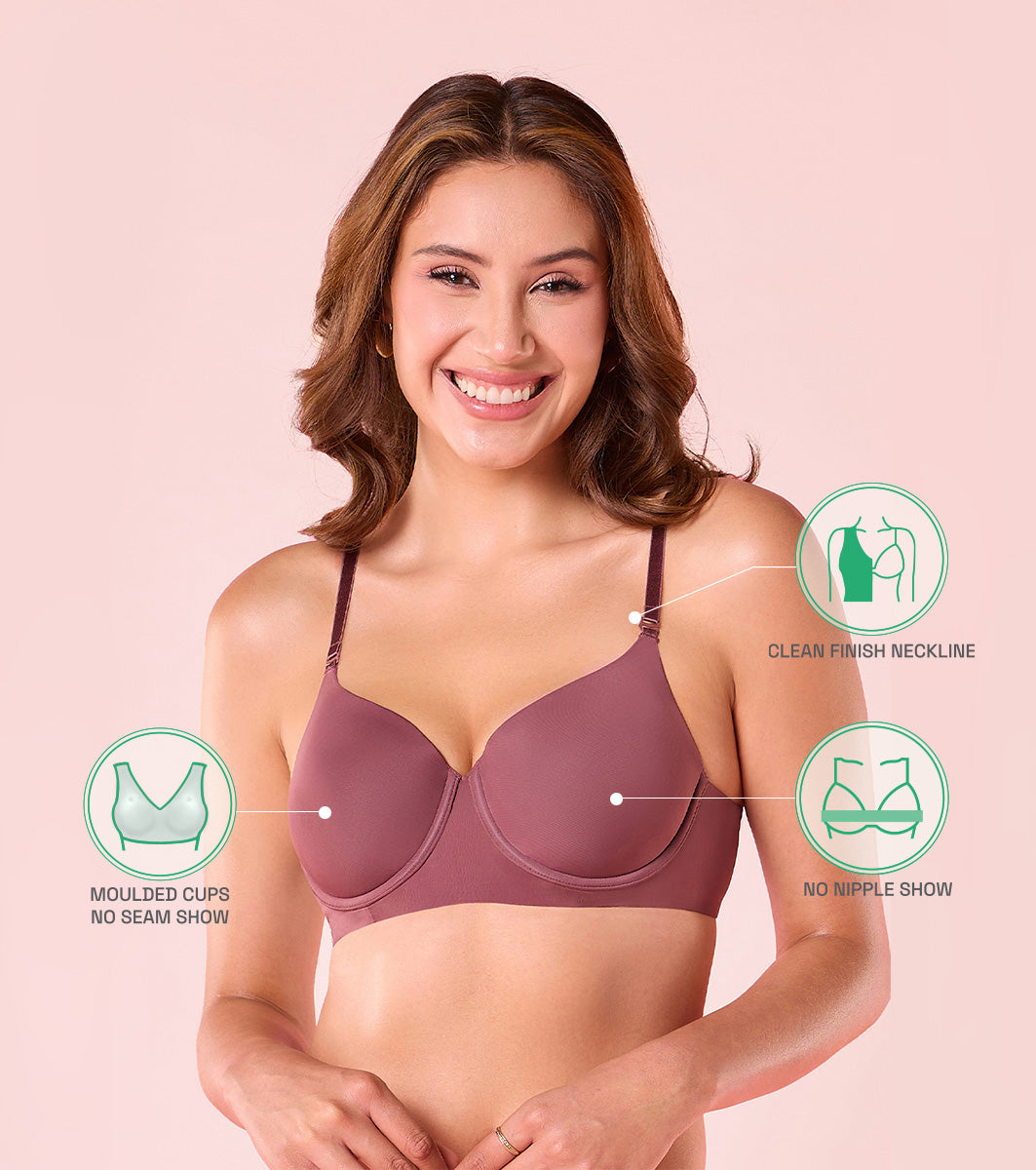 Enamor Innovations Ecolite, Smoother Perfect Lift Women's T-Shirt Bra - Crush Proof Cups, Padded, Wired, High Coverage - F057 (Toasted Mauve)