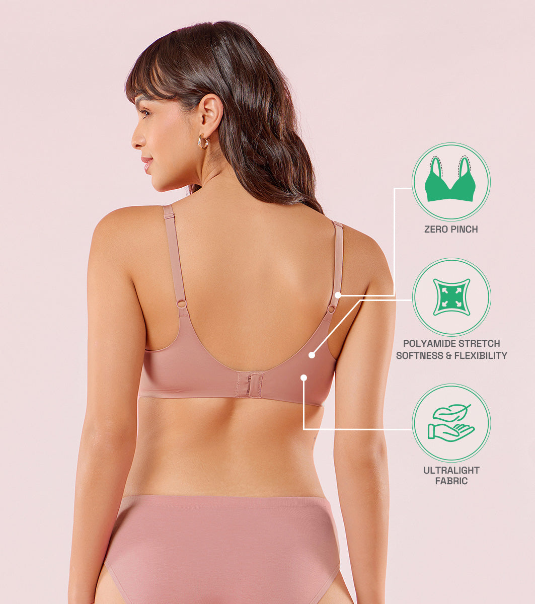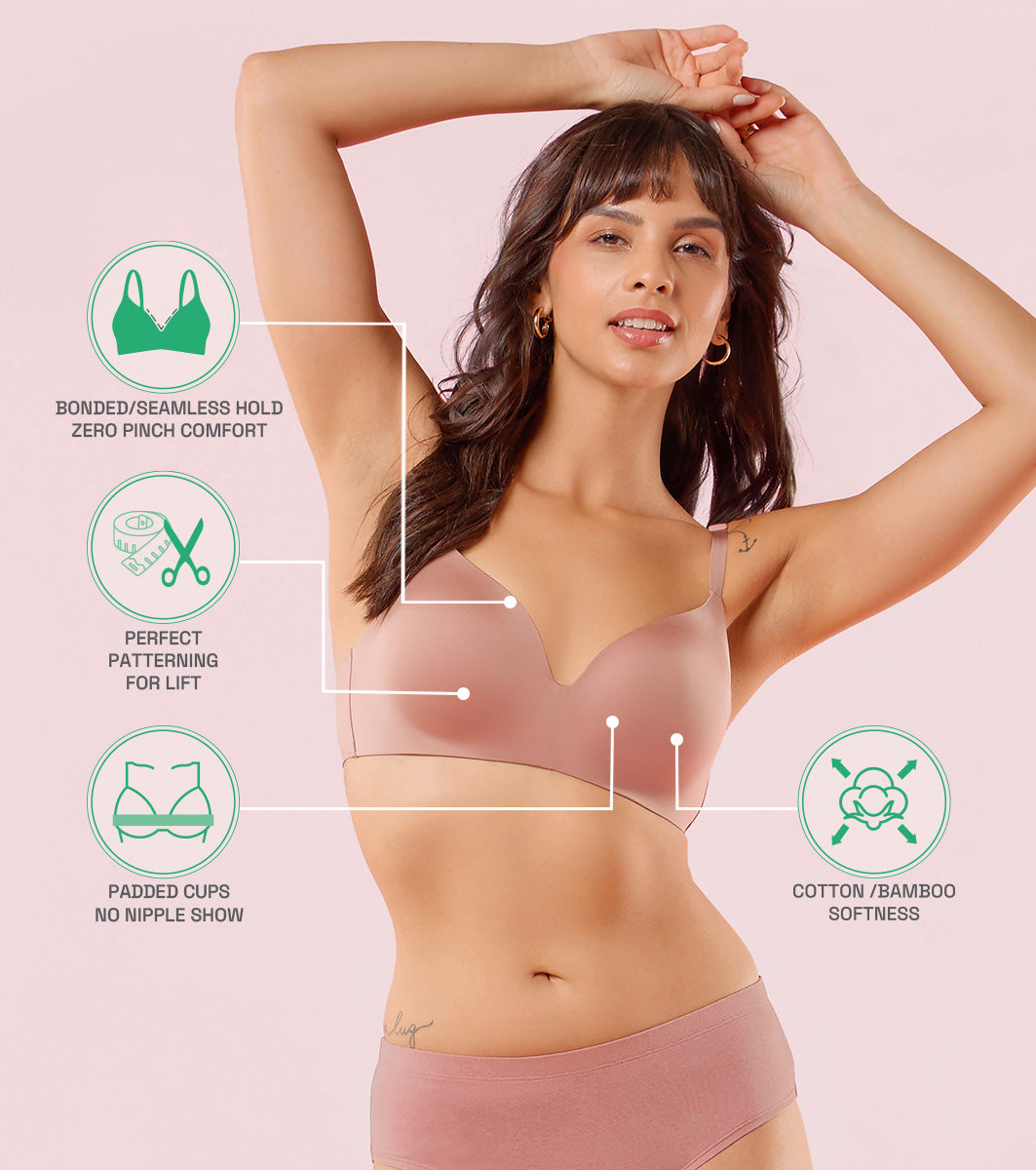 Enamor Innovations Invisibra, Ultra smooth, Flexi Wire Lift, Bonded, Women's T-Shirt Bra - Seamless, No-Pinch, Padded, Wirefree, Medium Coverage - F084 (Brown Blush)
