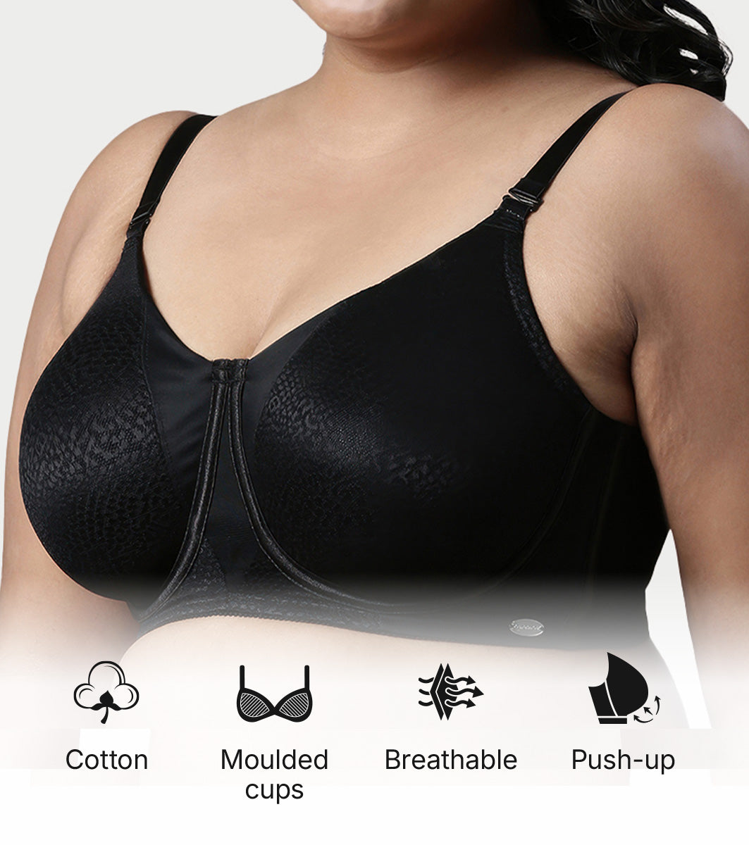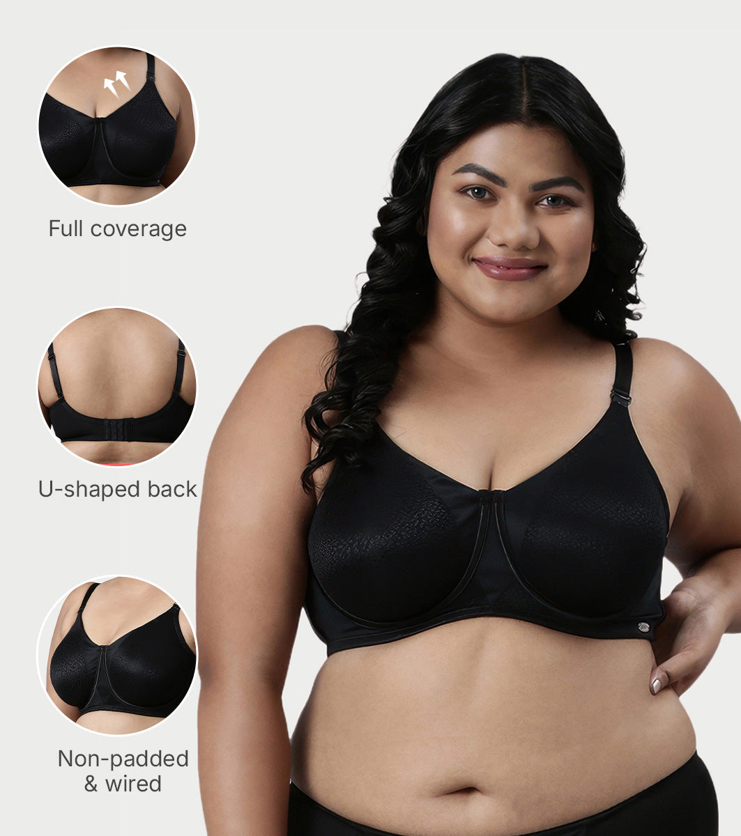 Enamor Innovations Transform Women's Full Support Minimizer Bra - Smoothening and Breathable Non Padded, Wired, Full Coverage - F124 (Available in Plus Sizes) (Black)