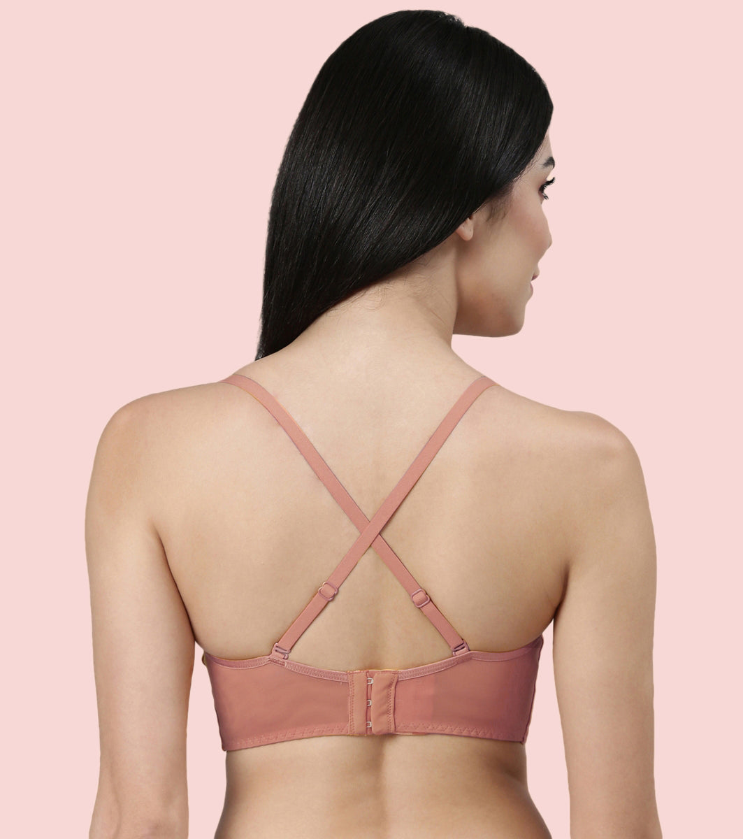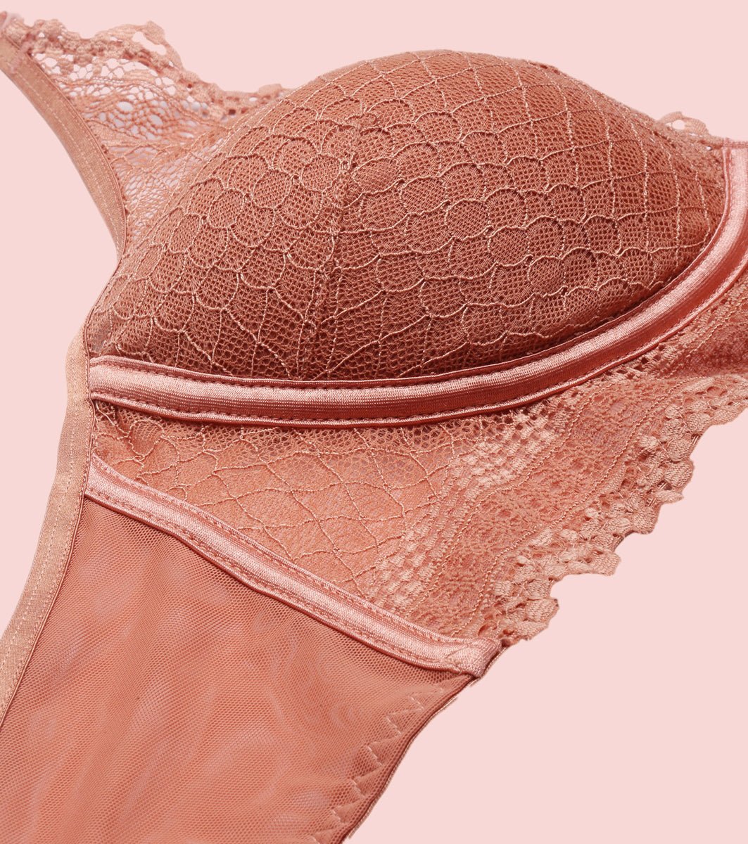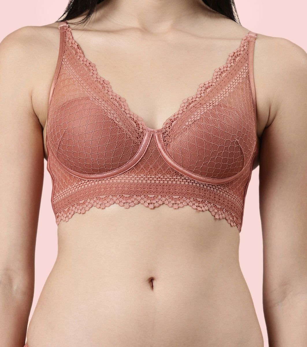Enamor Innovations Pure Ease, Cloudsoft cup ,Women's Longline Comfort Lace Plunge Bra - No-Pinch, No-Dig, Padded, Wirefree, High Coverage - F125 (Cedar Wood)