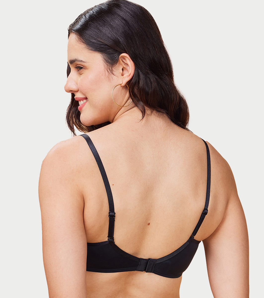 Enamor Women's Everyday Balconette T-Shirt Bra - Eco fabric, Padded, Wirefree, Medium Coverage - F131 (Black)