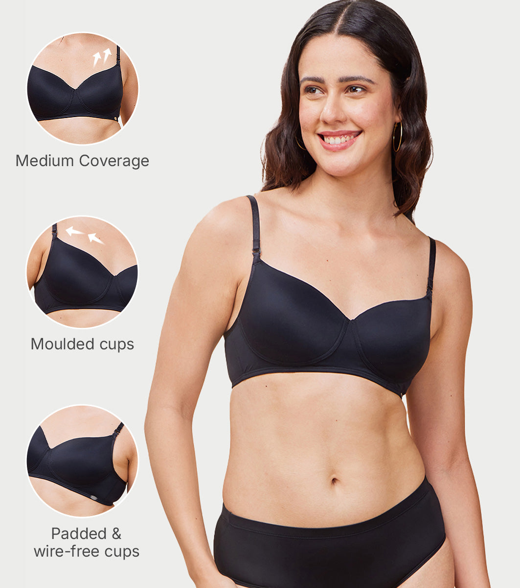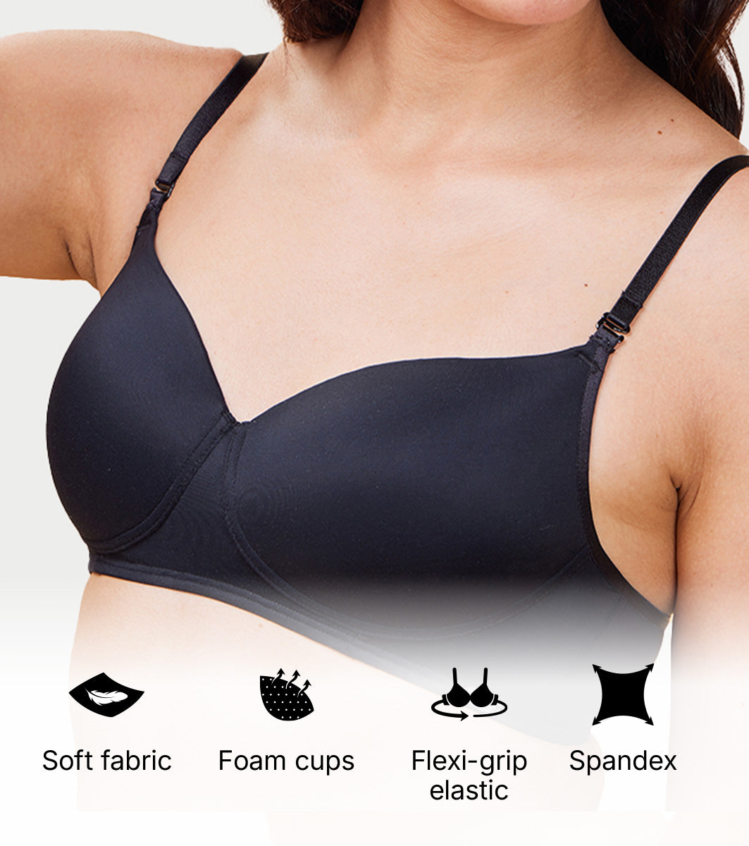 - Engineered with Comfy 5 technology, this bra supports you with gentle support, soft hold straps, flexi-grip elastic and gives you perfect shape and coverage.