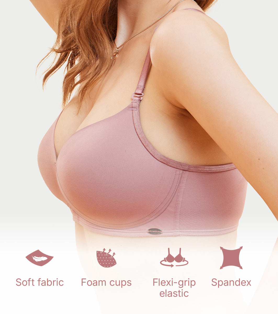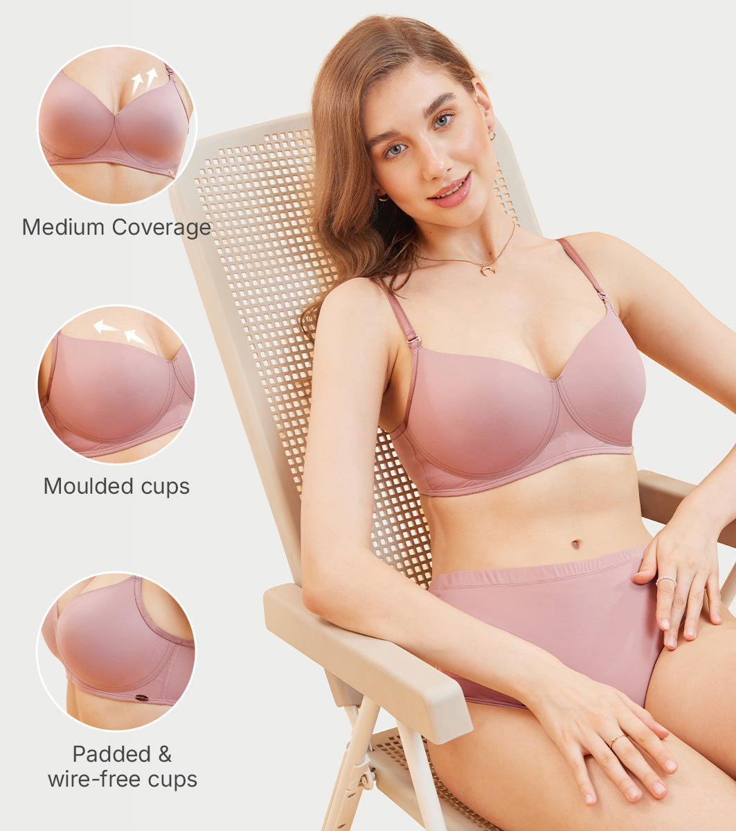 Enamor Women's Everyday Balconette T-Shirt Bra - Eco fabric, Padded, Wirefree, Medium Coverage - F131 (Nostalgia Rose)