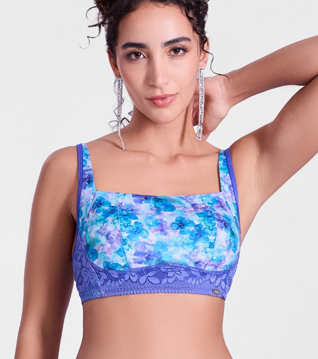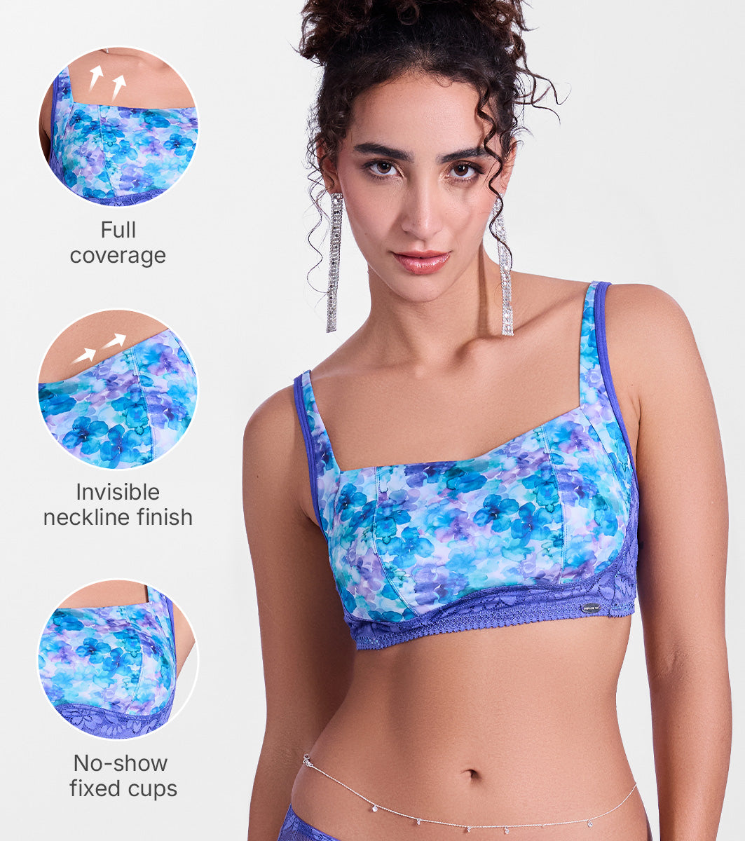Square-neck floral printed bustier padded bra featuring a stylish and modern design. Crafted for a trendy look, this bra offers a comfortable wire-free fit with soft padding for gentle support and shaping. The bustier-style silhouette enhances the overall appeal, while the delicate floral print adds a touch of femininity. Perfect for both everyday wear and fashion-forward styling.