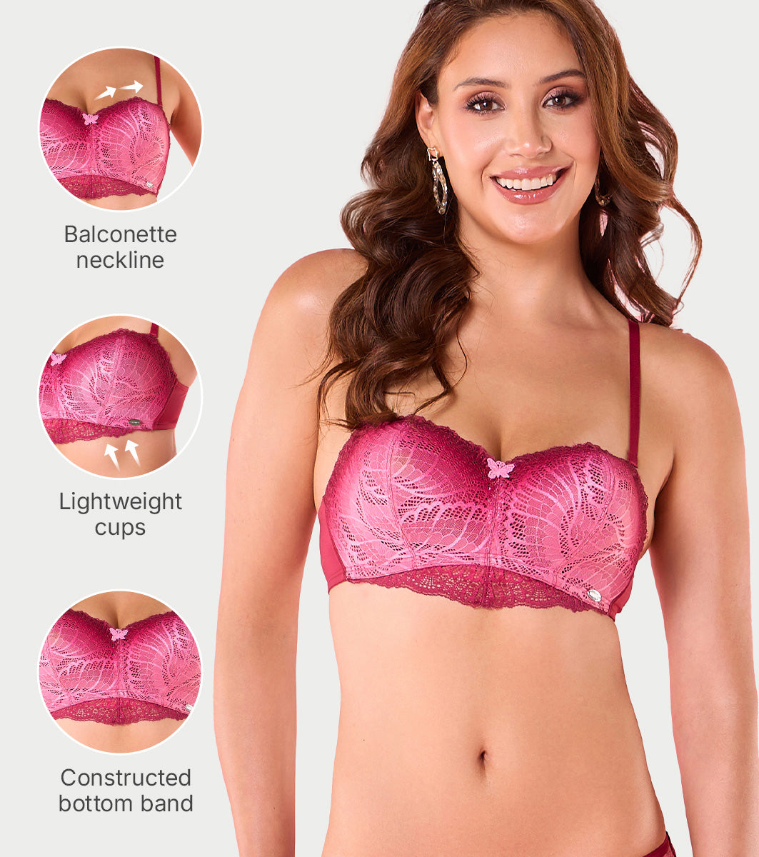 Elevate your elegance with our Lace Balconette Padded Bra. Designed for a naturally lifted silhouette, this non-wired style offers gentle support with soft padding for a flattering shape. The intricate lace detailing on the cups and bottom adds a romantic touch, while the smooth microfibre back ensures all-day comfort. Perfect for a chic and feminine look.