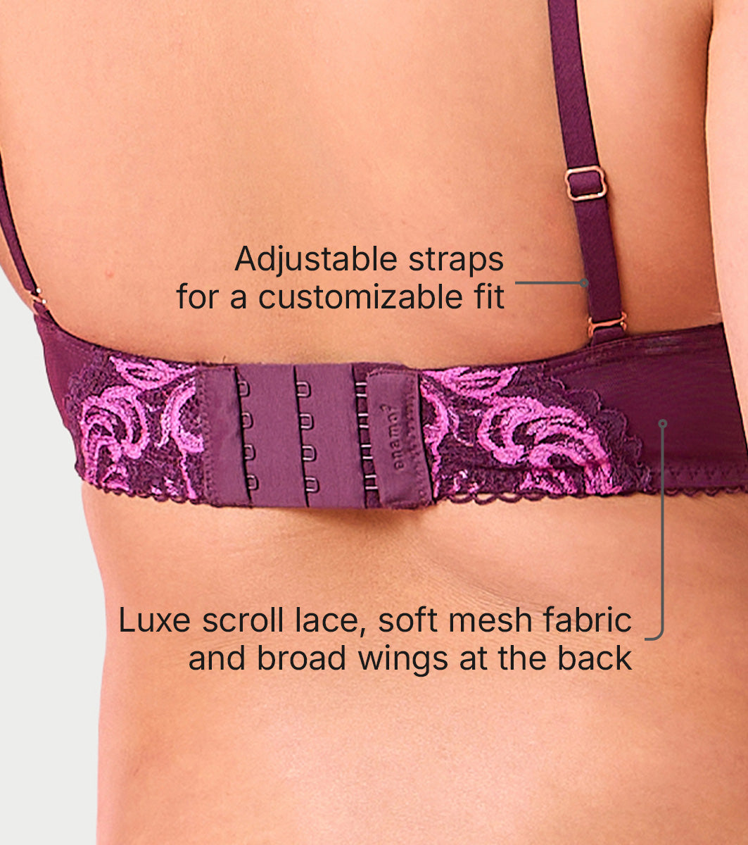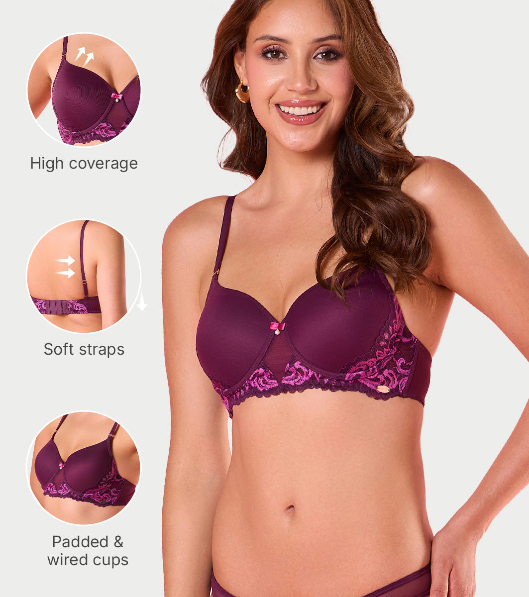 Enamor F194 Padded Wired High Coverage Glam Wave Smooth Bra - Plum Swirl