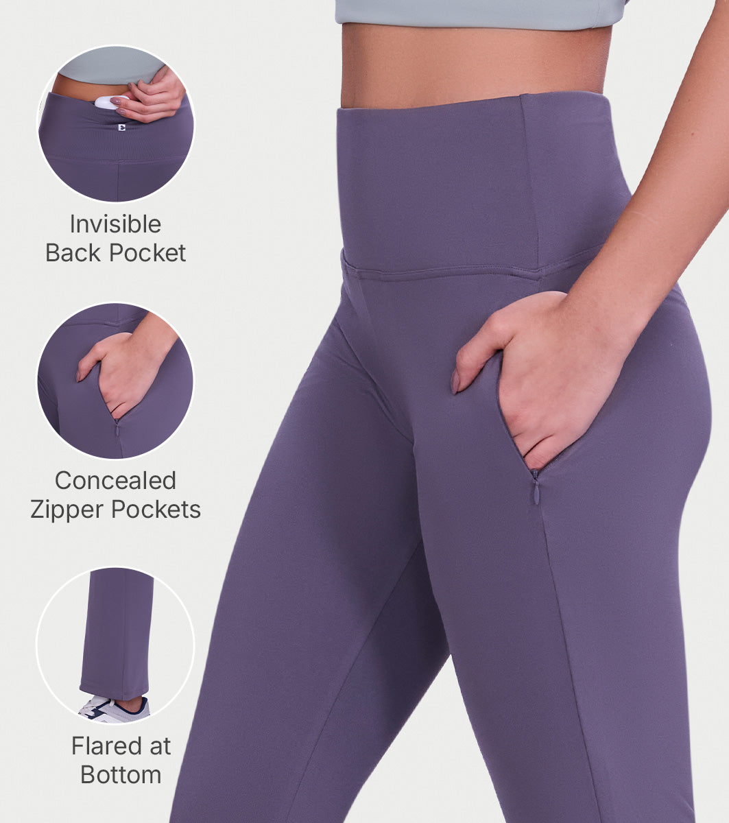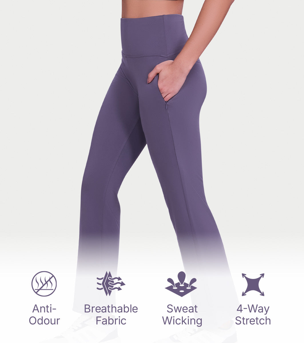 Enamor Fav Flare Pants – Butter-soft dry-fit, high-rise support & sleek flared style -A407 (Excalibur)