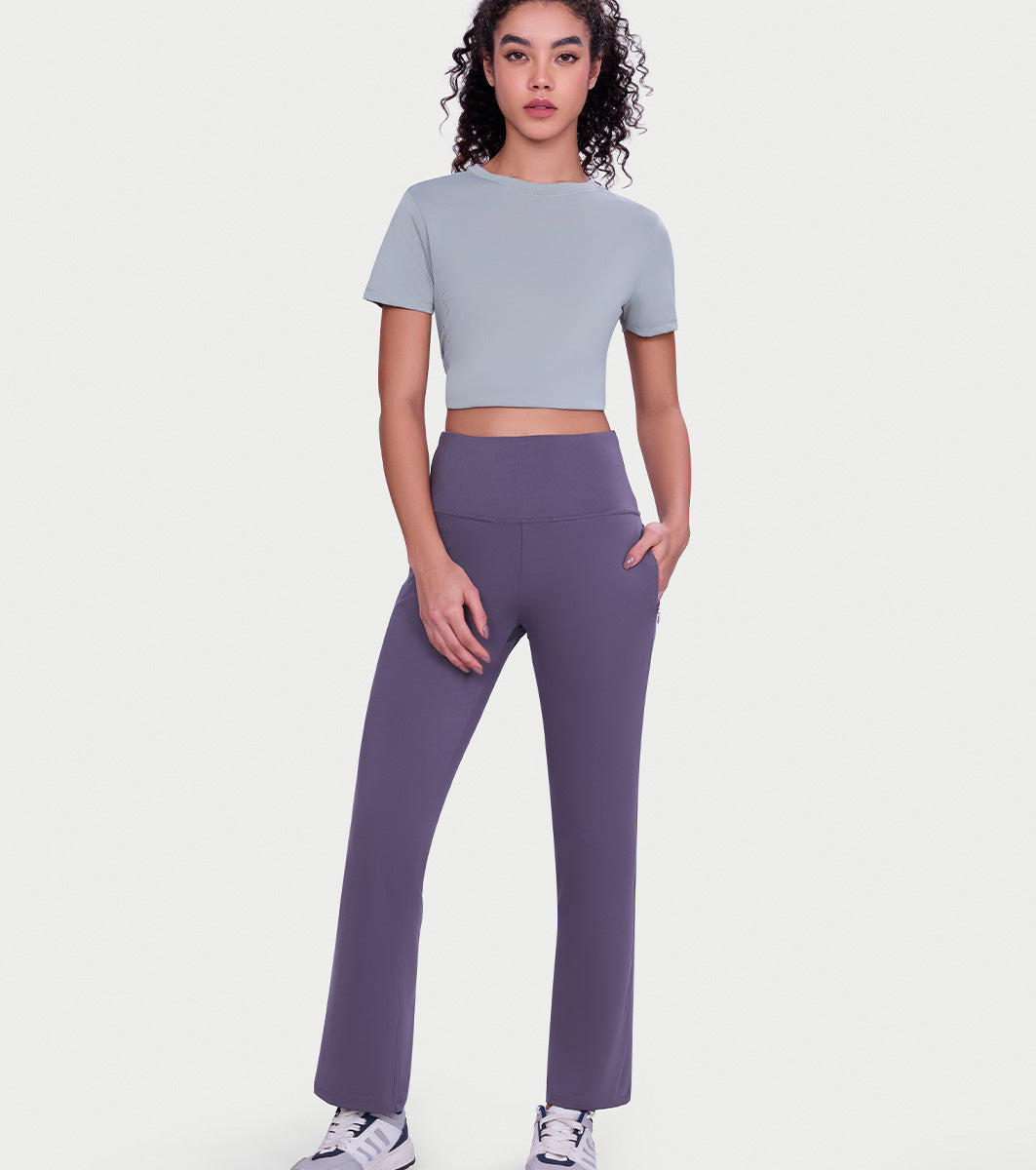 Step out in sleek comfort with the Fav Flare Pants — designed with butter-soft dry-fit fabric and a high-rise support waistband for a flattering fit. With bulk-free seams, concealed pockets, and a modern flared silhouette, these pants keep you cool, confident, and stylish from workouts to everyday wear.