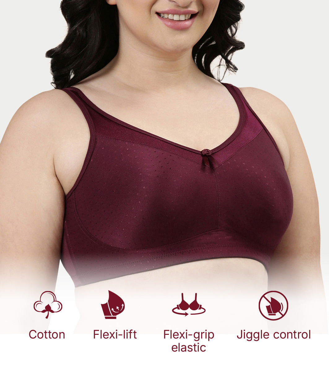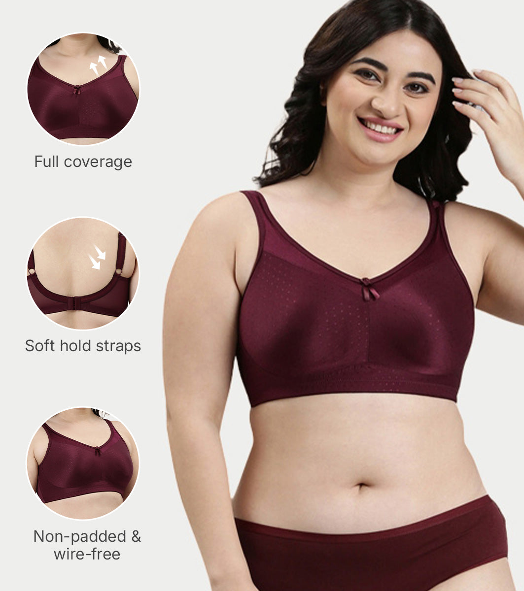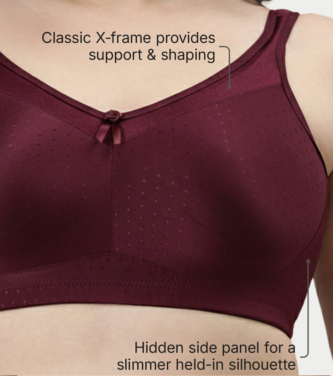 Enamor Hidden X-Frame and Smoothening Women's Full Support Everyday Bra - Jiggle control, Non Padded, Wirefree, Full Coverage - FB12 (Available in Plus sizes) (Grapewine)